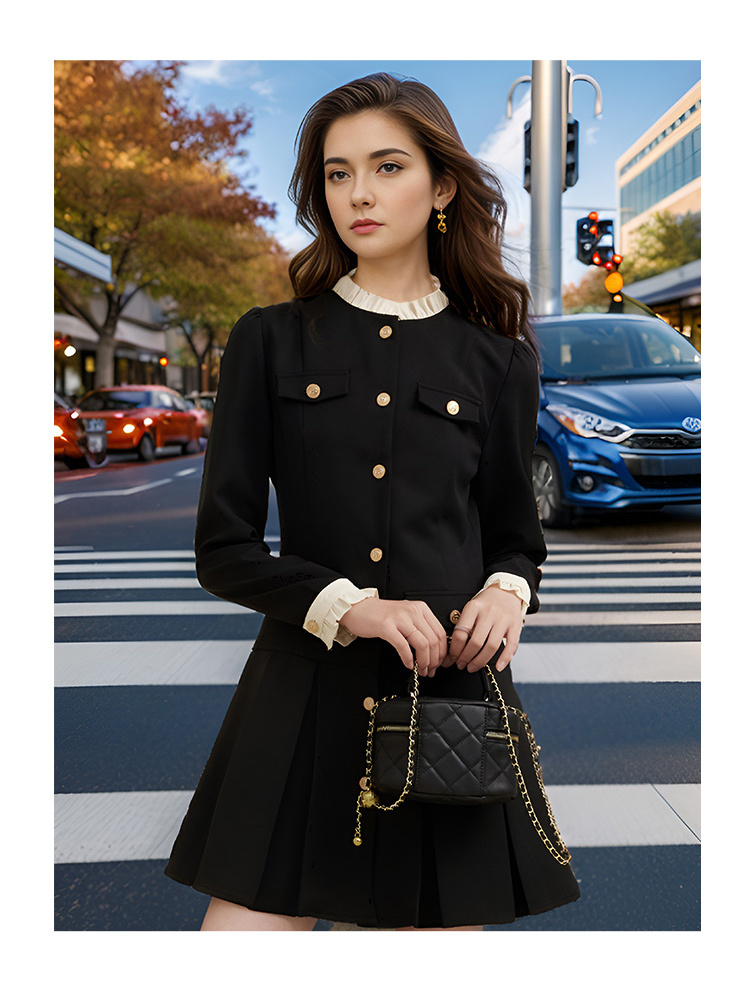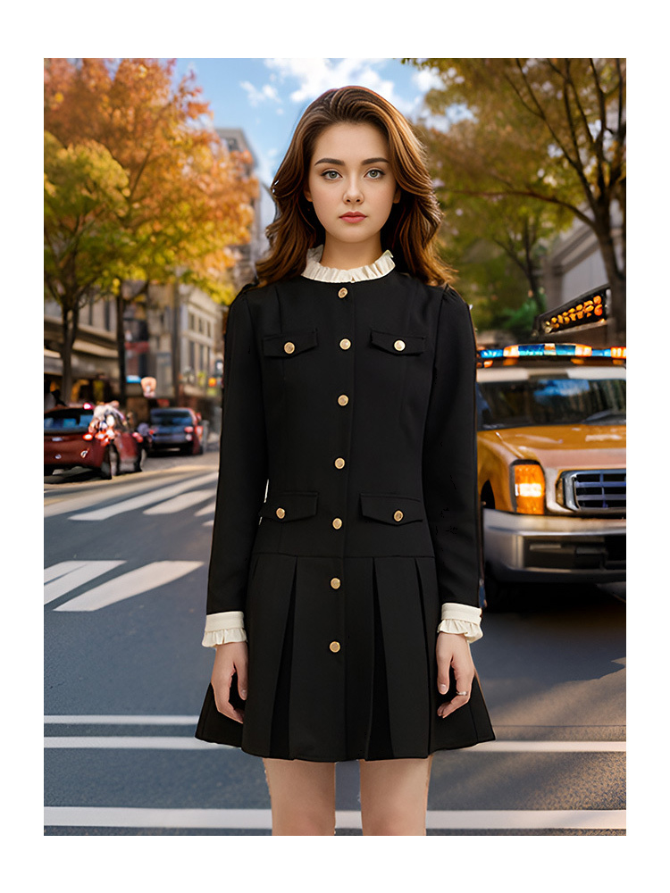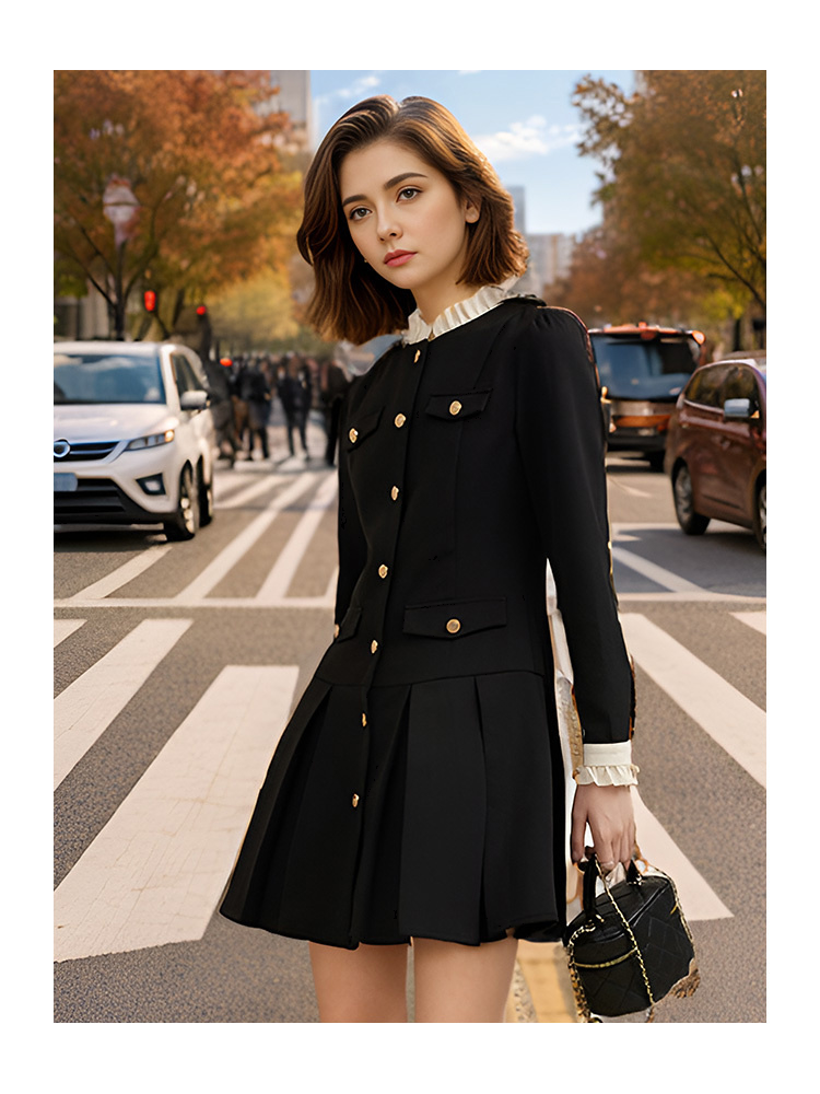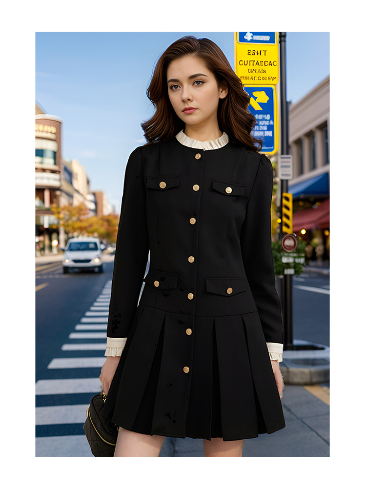 8/22奢姿大码女装2024冬季气质荷叶领裙子胖妹妹时尚百褶拼接连衣裙9944862025