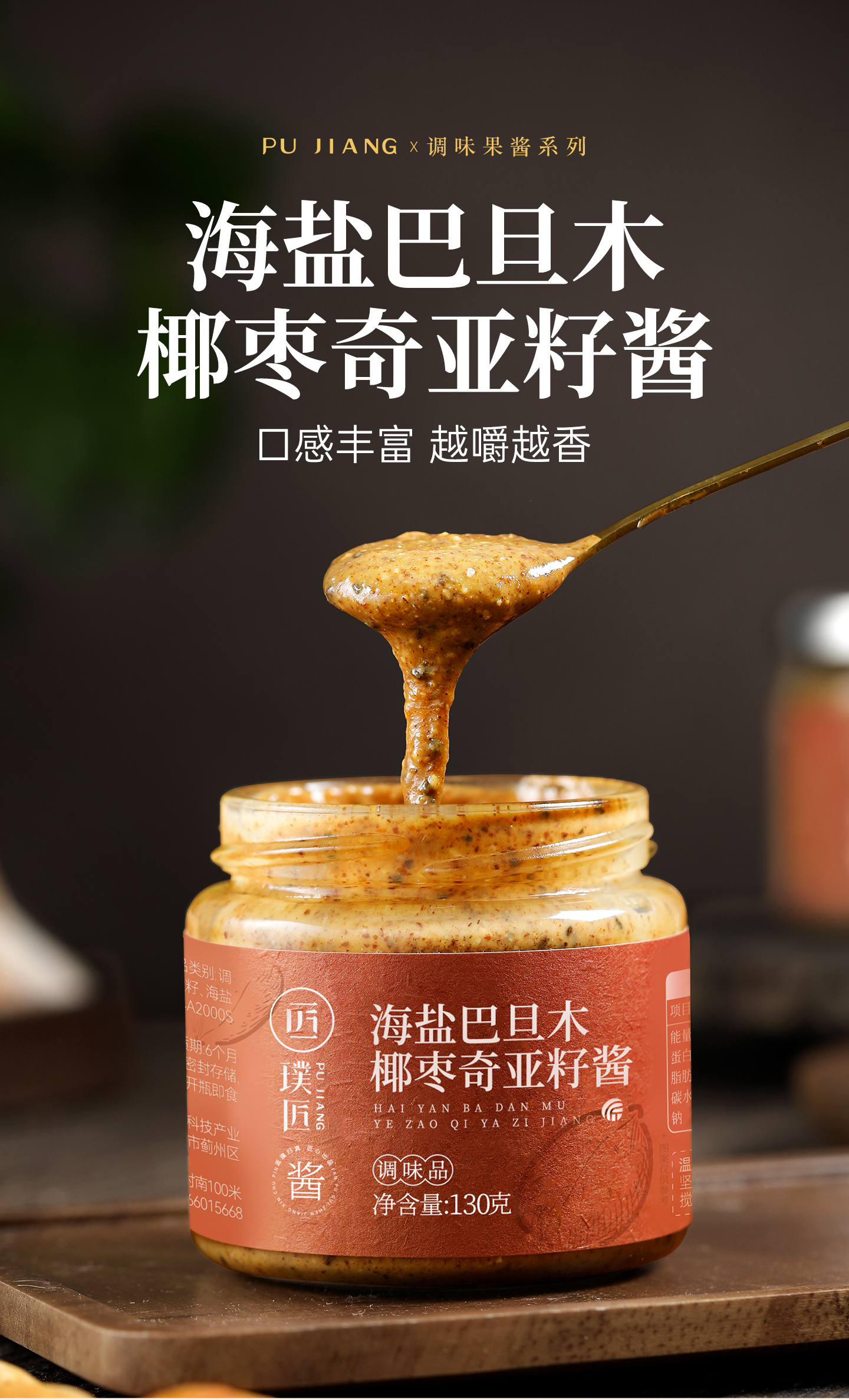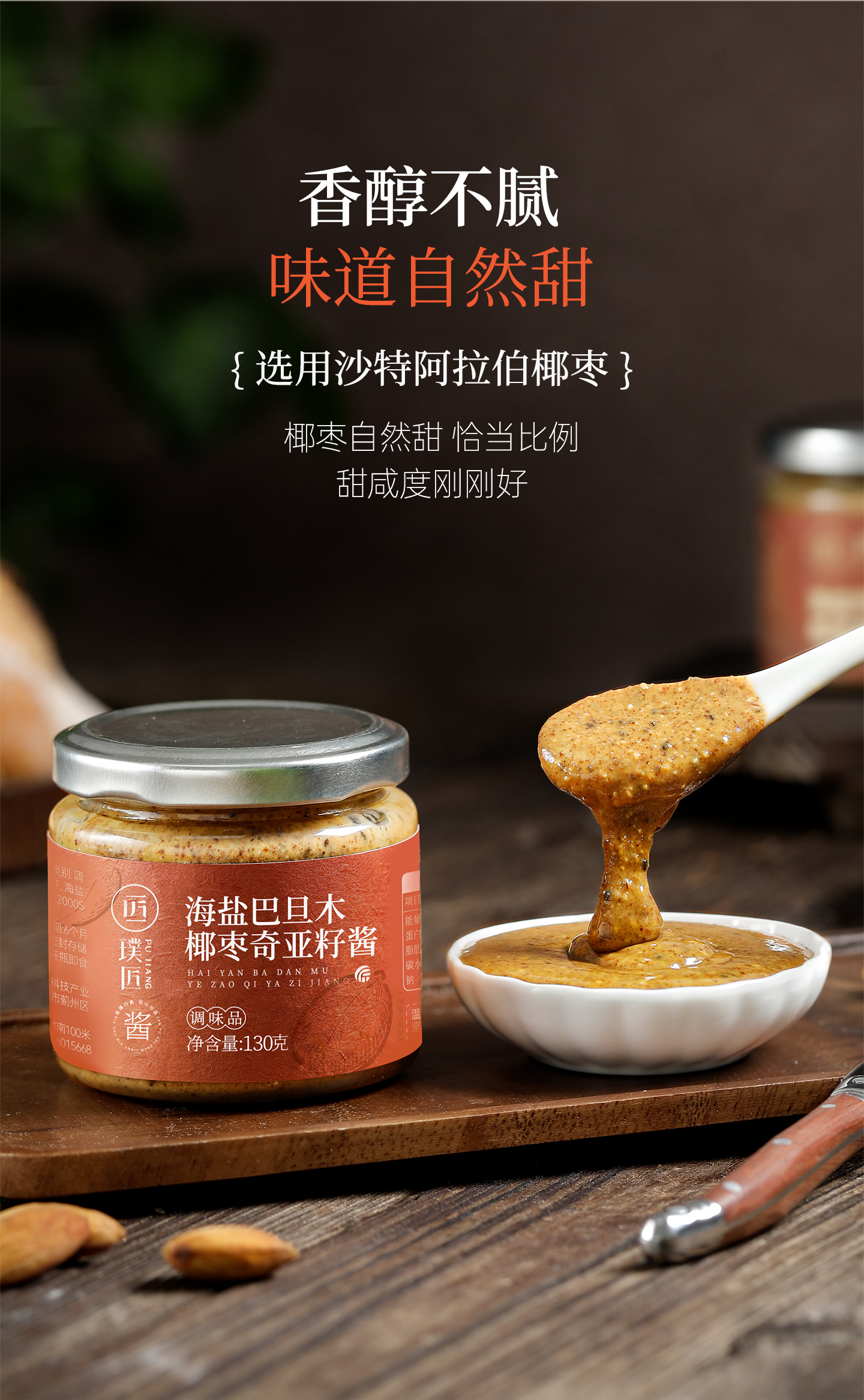 璞匠海盐巴旦木椰枣奇亚籽酱抹面包早餐沙拉酱颗粒感