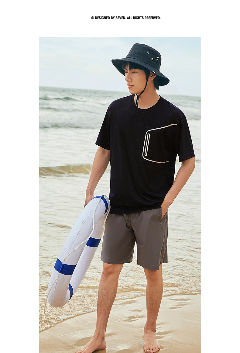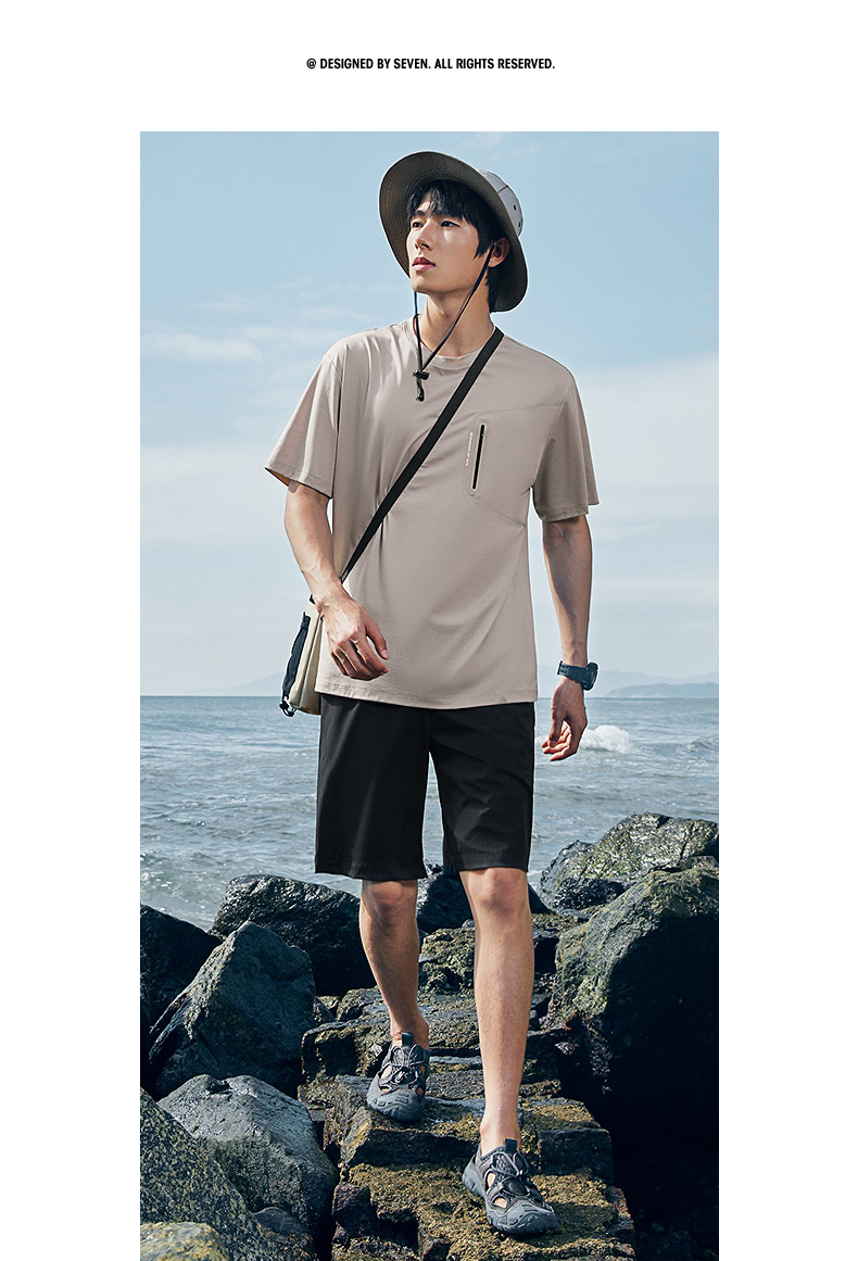 【高弹】柒牌短袖T恤男士2024夏季新款时尚休闲宽松舒适圆领上衣 126T72810