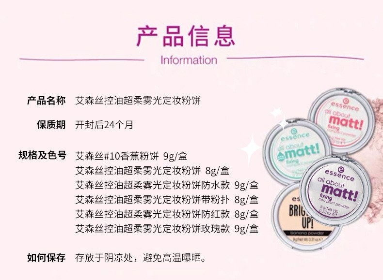 德国艾森丝essence香蕉粉饼9G 散粉哑光遮瑕控油定妆蜜粉