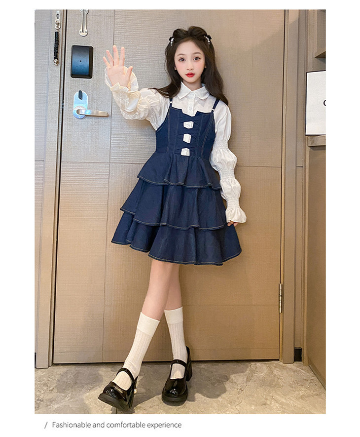 2023年新款洋气时髦两件套网红炸街时髦长袖公主裙子PXJ-CXJ蛋糕牛仔裙