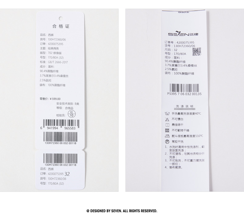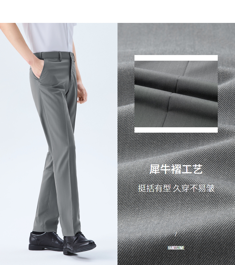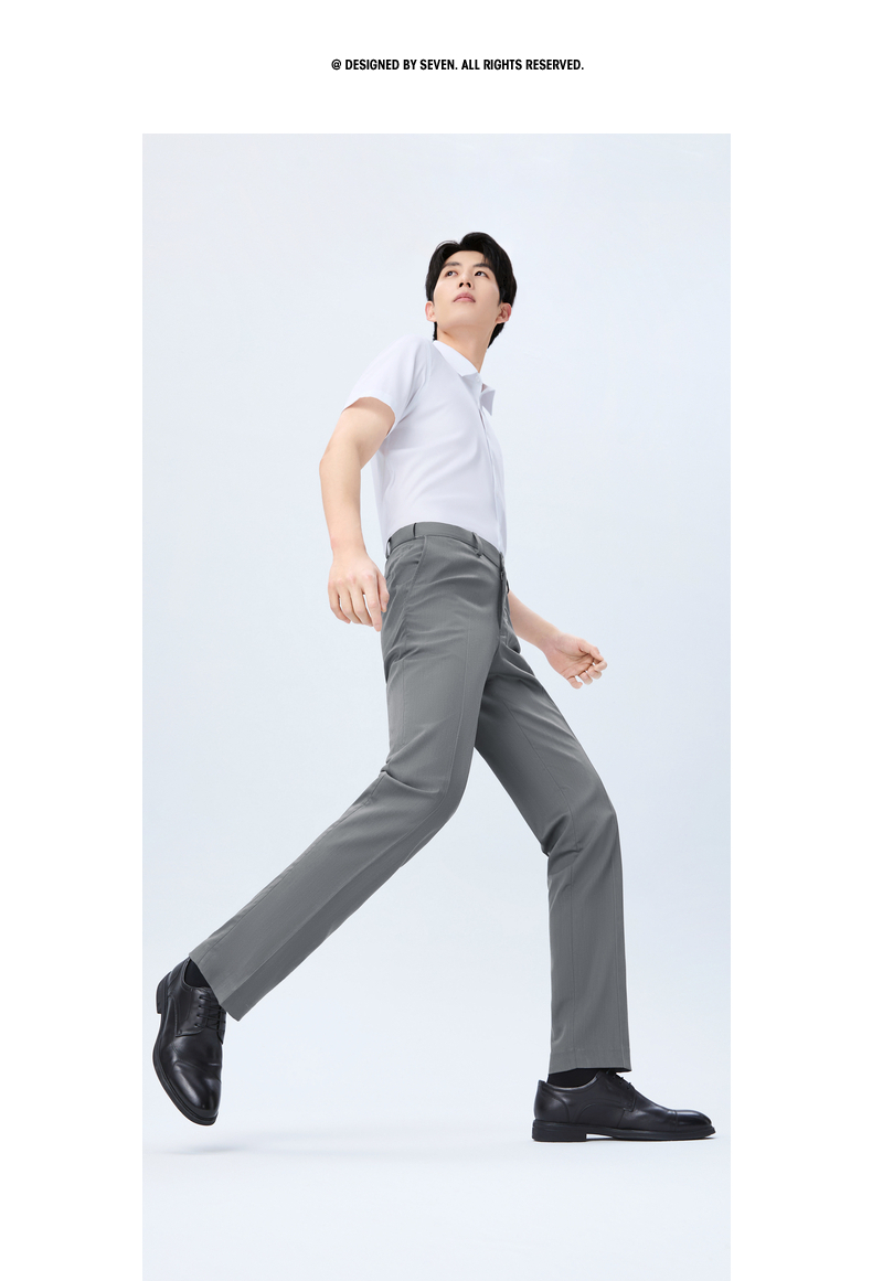 【犀牛褶/含莱赛尔/含桑蚕丝】柒牌2026春夏修身微弹商务混纺西裤 130H72360