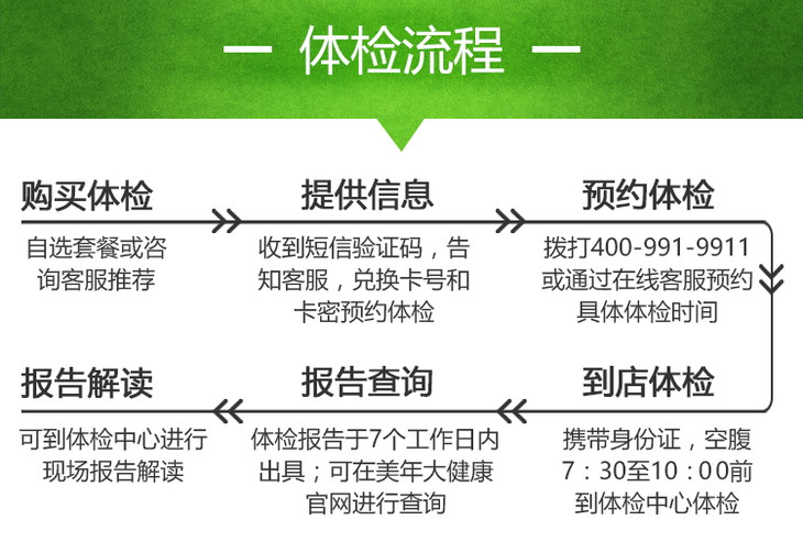 | 7、分院体检时间为周一至周日每天7:50-11:00,分院10:00停止采血,请务必提前到达。 |