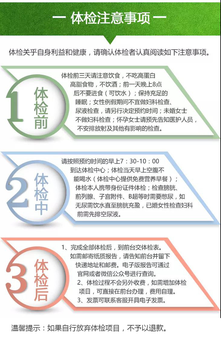 | 6、体检请提前3天进行预约,不预约,分院可拒绝接检; |