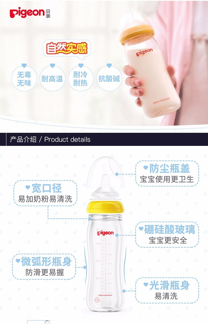 【一般贸易】贝亲宽口玻璃奶瓶240ml黄色AA71