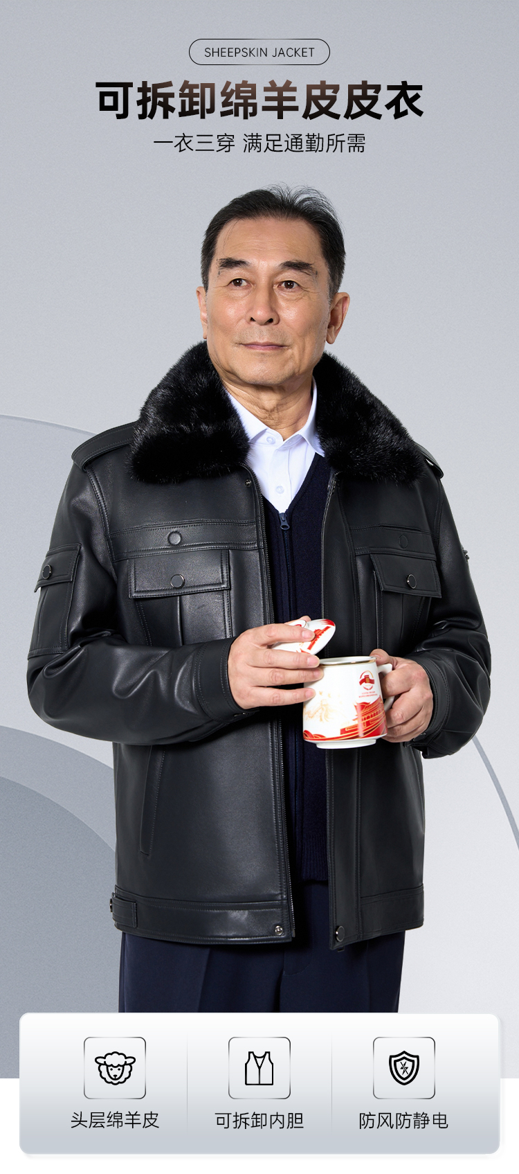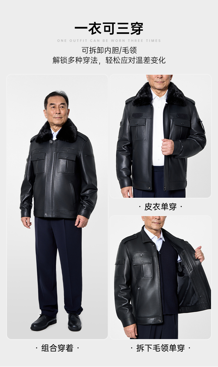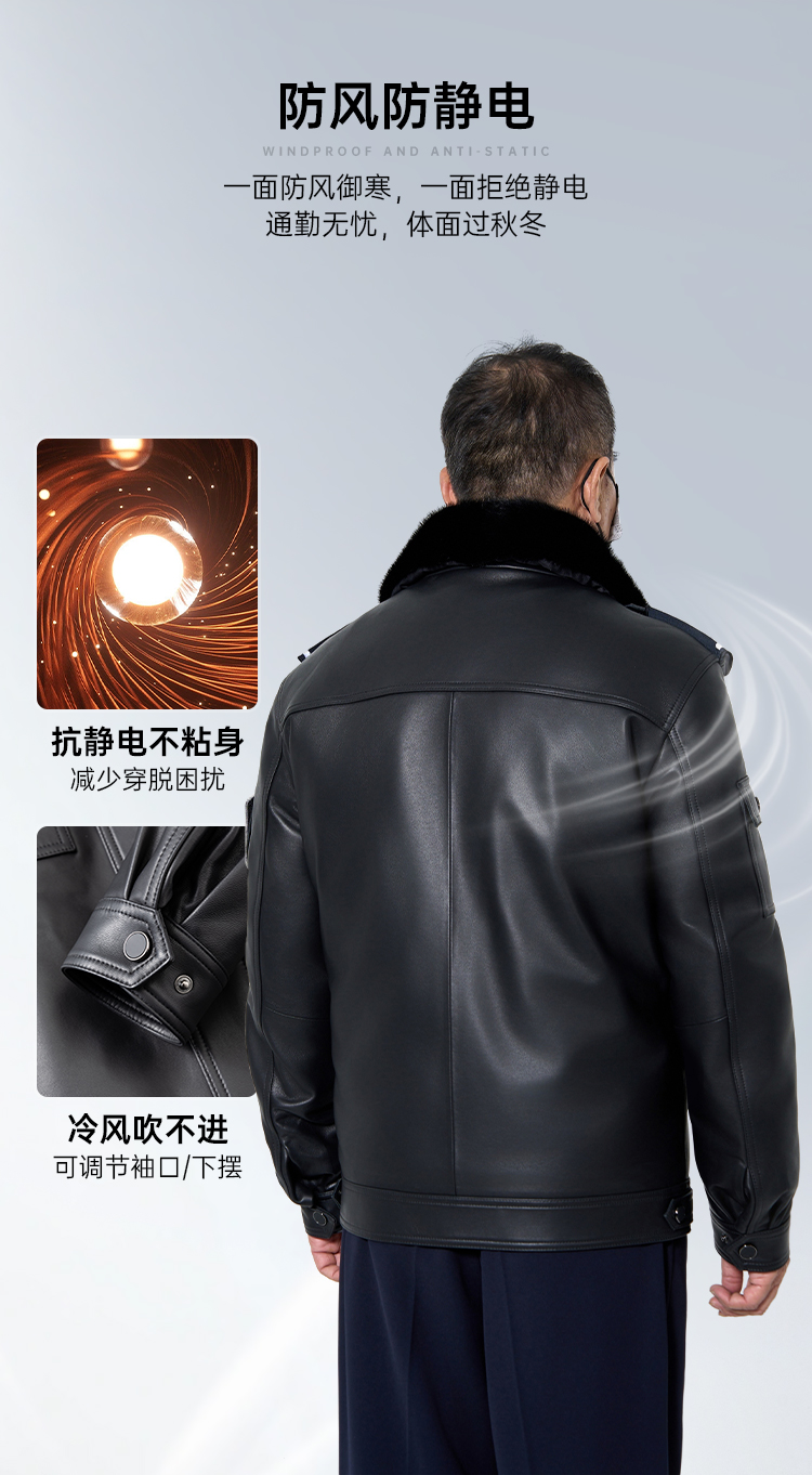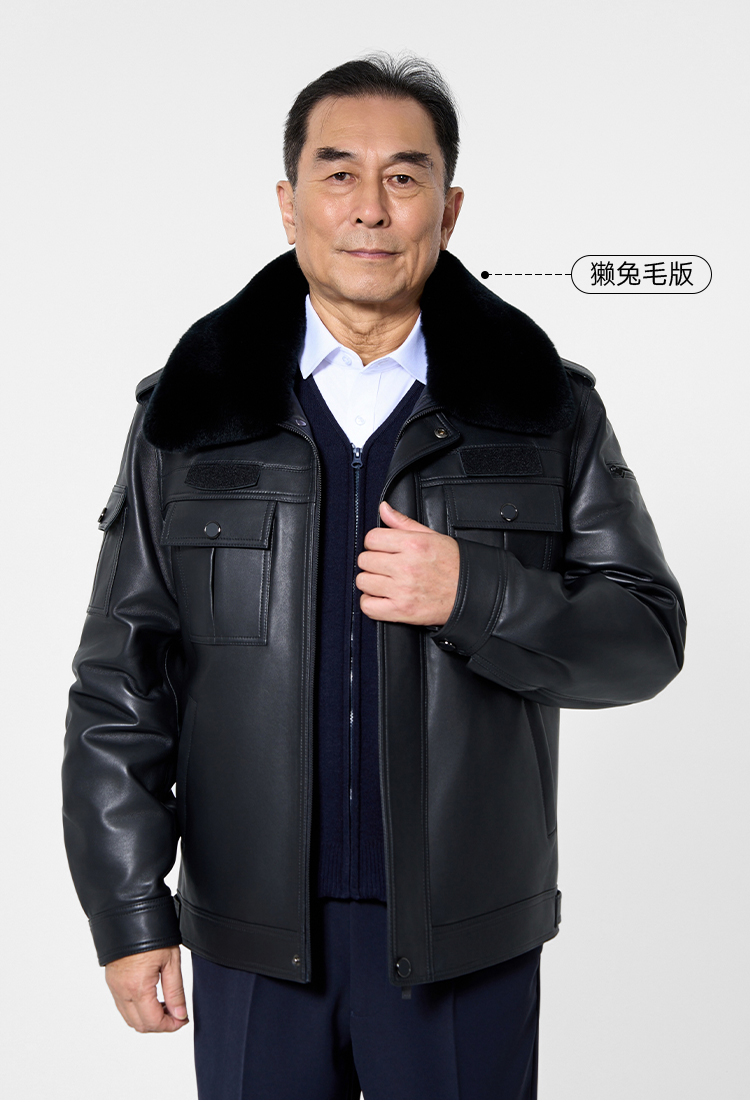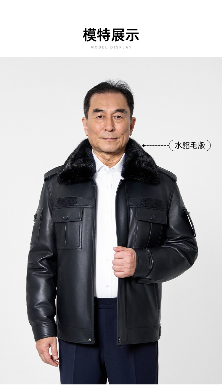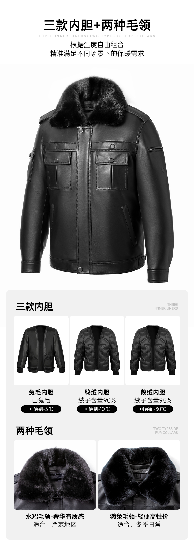 【实付满399送保温杯】【 可拆卸内胆皮衣叔叔款】水貂/獭兔毛领皮夹克绵羊皮大衣通勤保暖羽绒外套长辈送礼