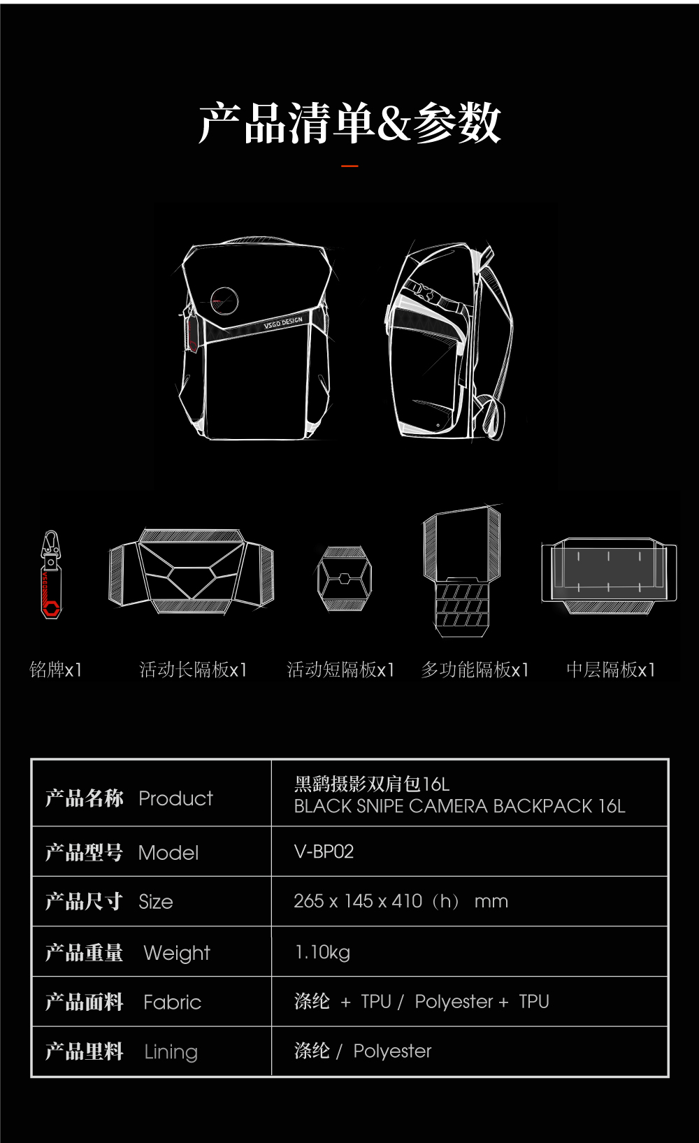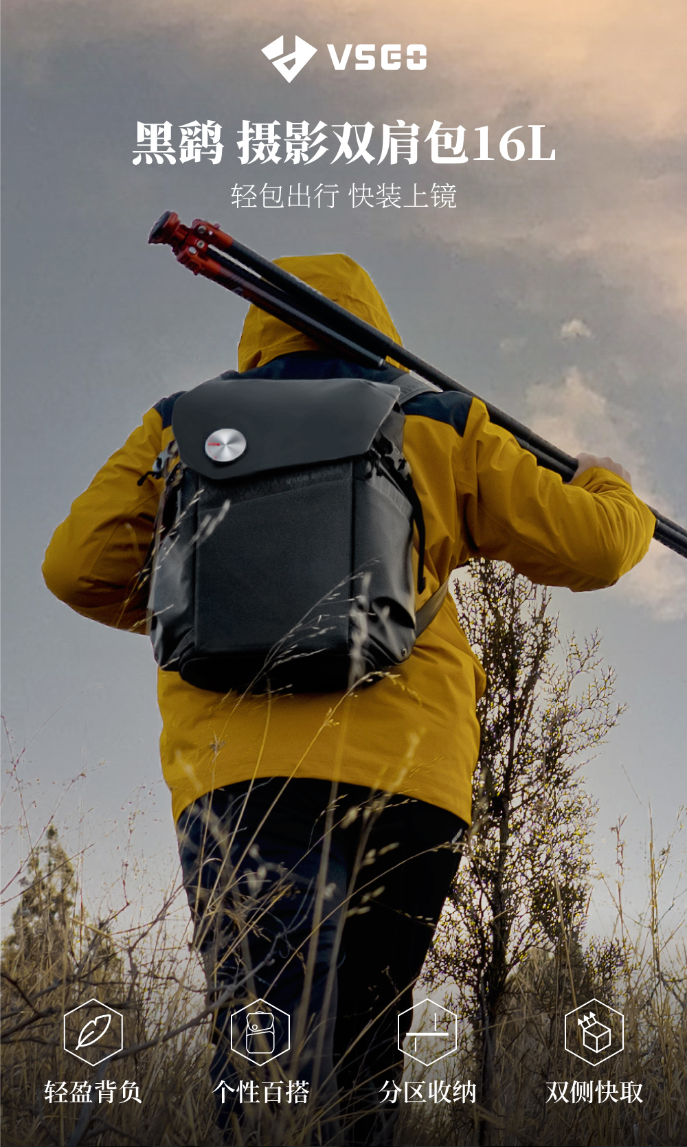 VSGO摄影包双肩包黑鹞微单反相机包-16L隐匿黑
