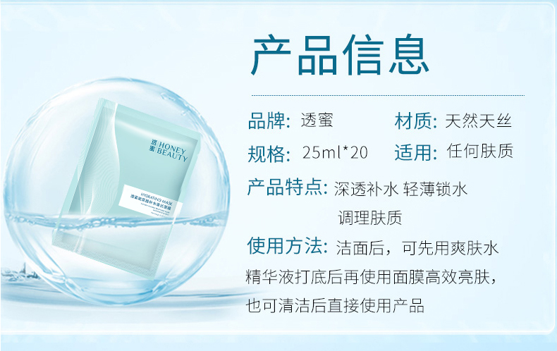 【补水蚕丝面膜丨第2件0元 | 任选2件 价格低的0元】透蜜 玻尿酸补水蚕丝面膜20片/盒