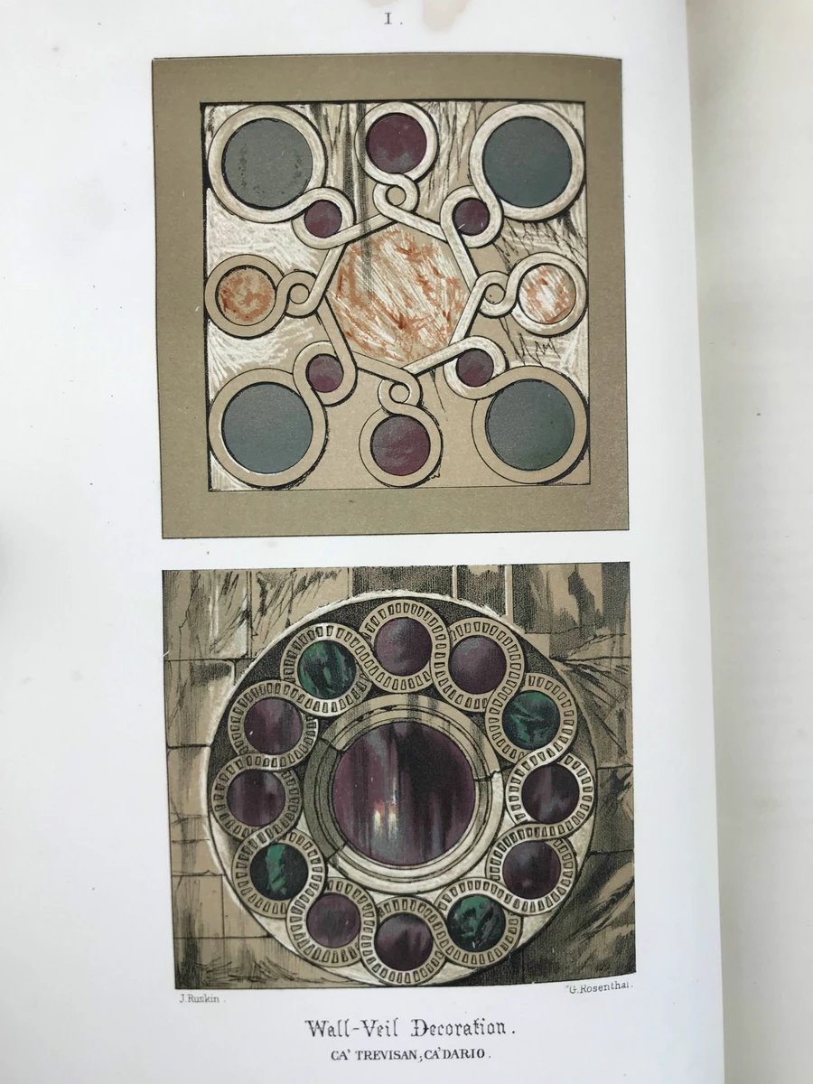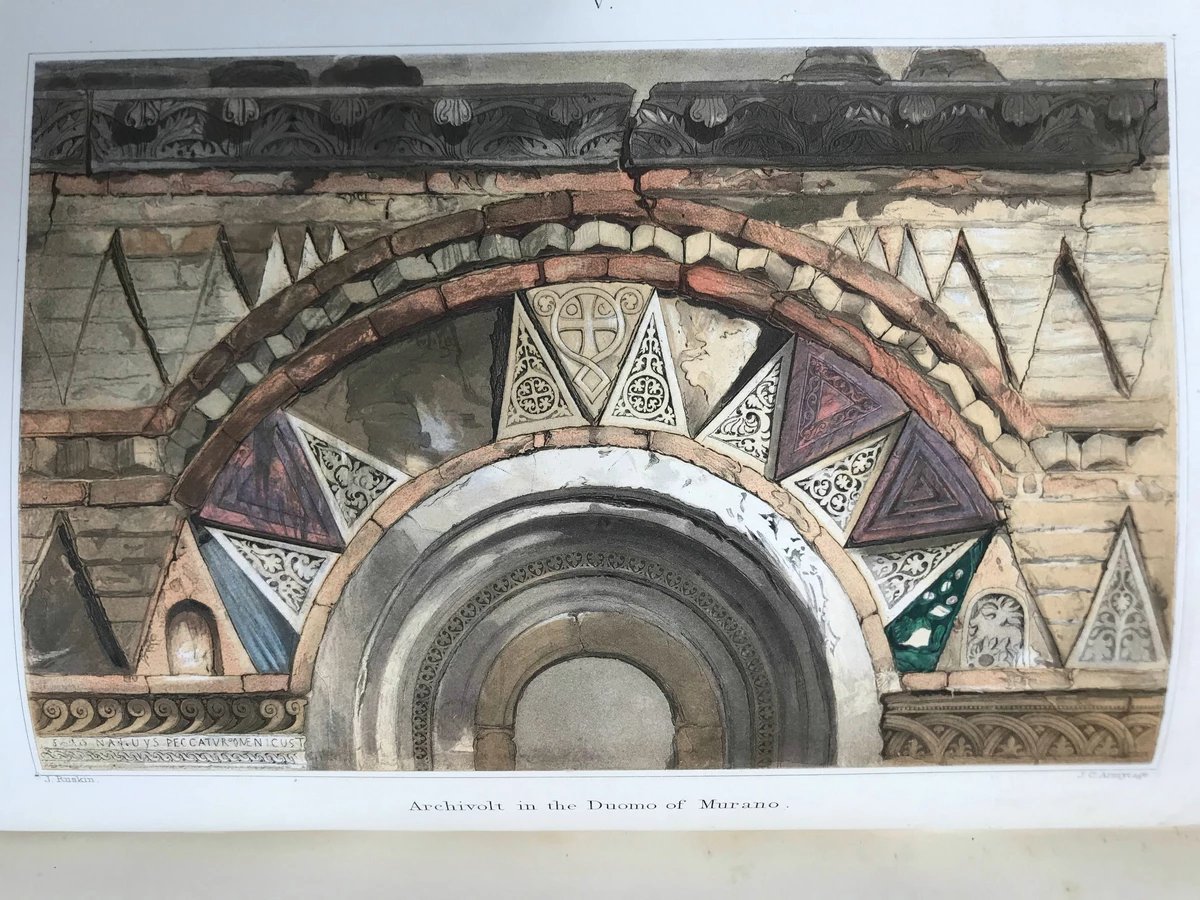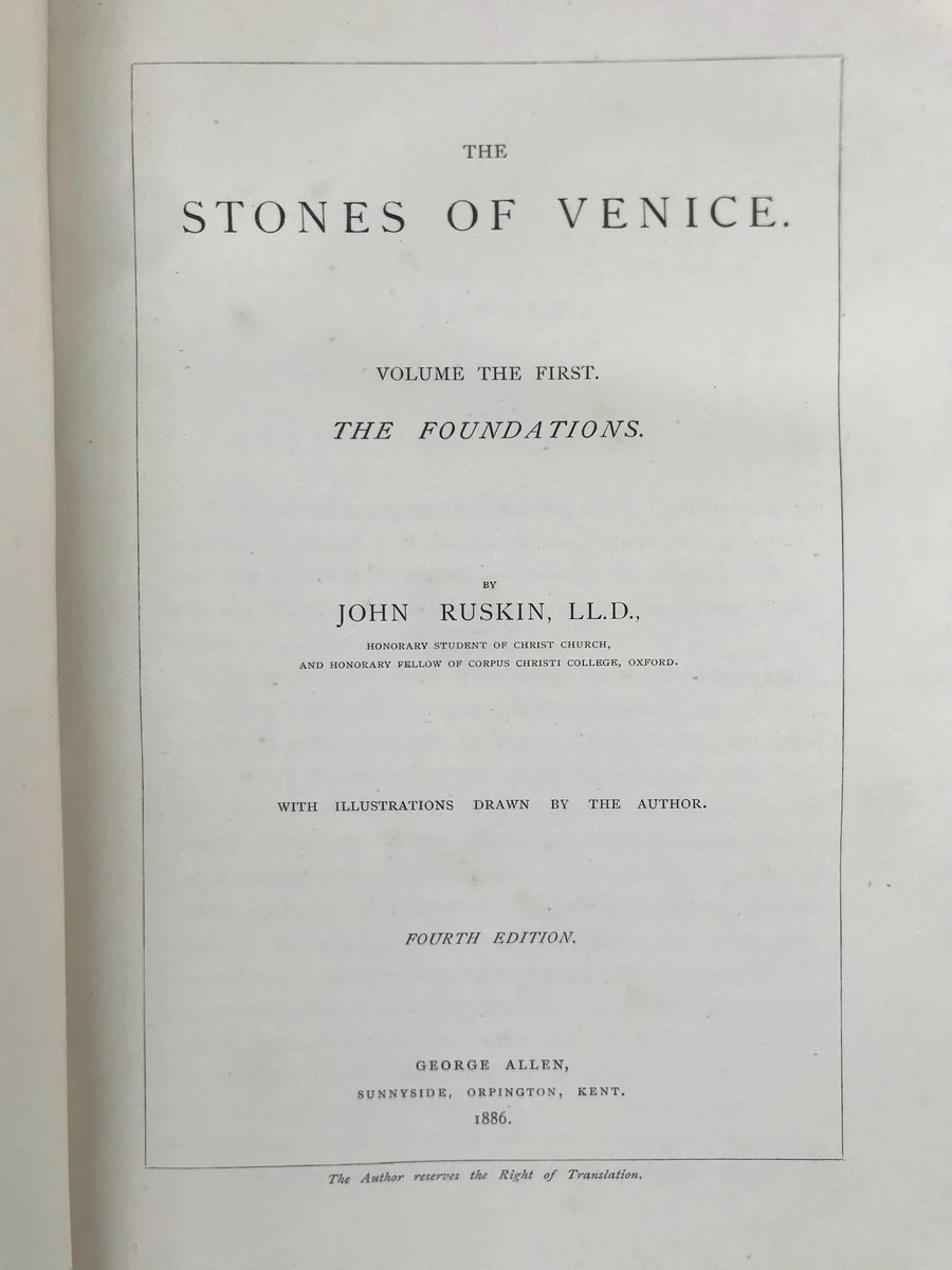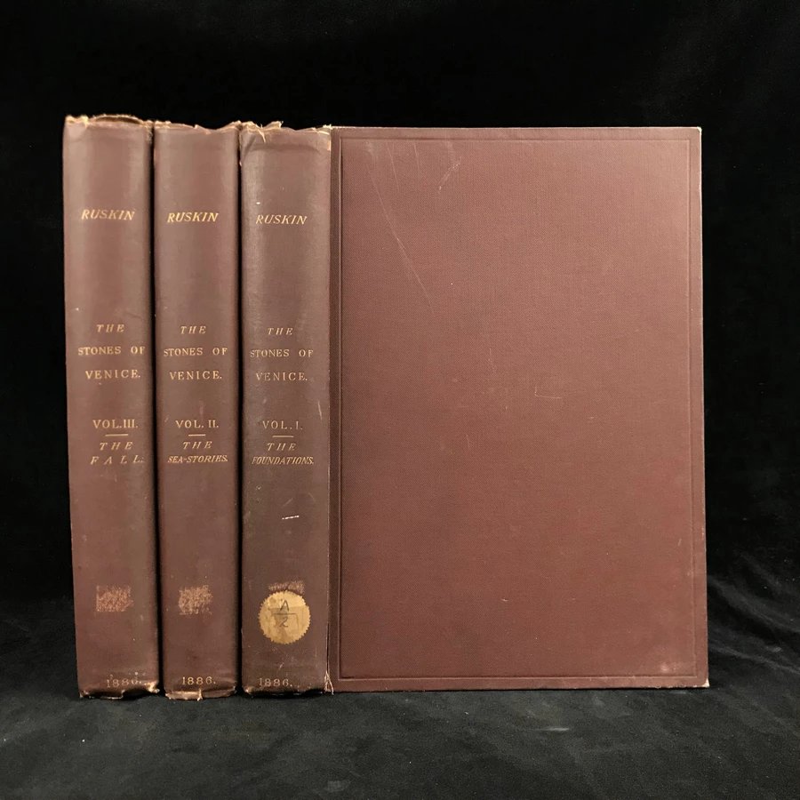 含藏书票!1886年 罗斯金《威尼斯之石》(全3卷) 约200幅版画插图 漆布精装大16开