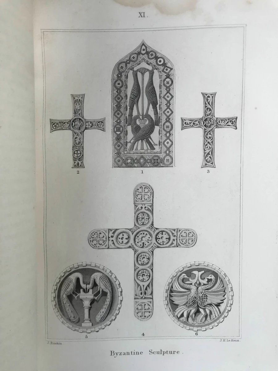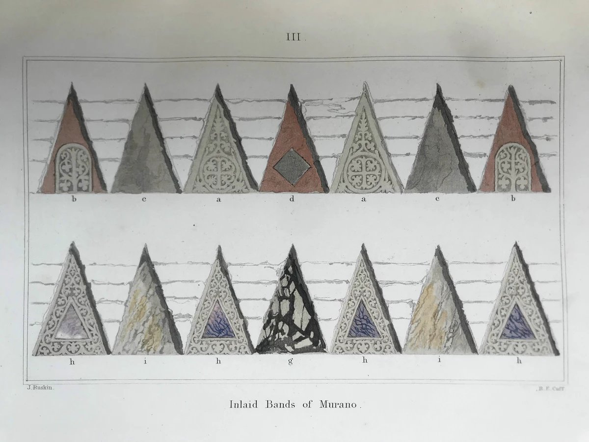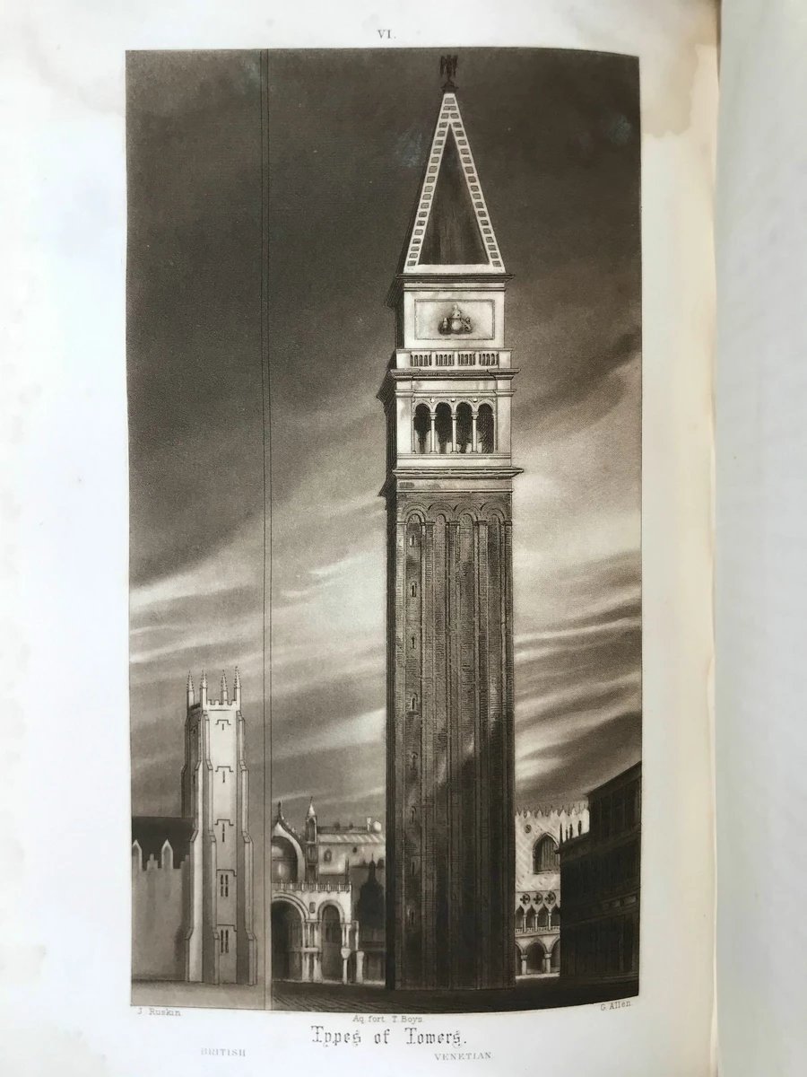 含藏书票!1886年 罗斯金《威尼斯之石》(全3卷) 约200幅版画插图 漆布精装大16开