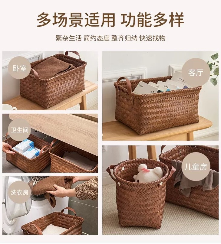第一款【YiLuoShan复古仿藤编收纳筐】 家居美学,出口欧洲货 老手艺人匠心编织,纯手工制作 环保PP材质+精致PU把手,满满高级感 经久耐用❗️容易清洗❗️不会发霉❗️ 衣服,书本,零食,玩具,杂物,瓜果蔬果,万物皆可收纳 出口订单现货不多,喜欢就早点抢,售完不加‼️