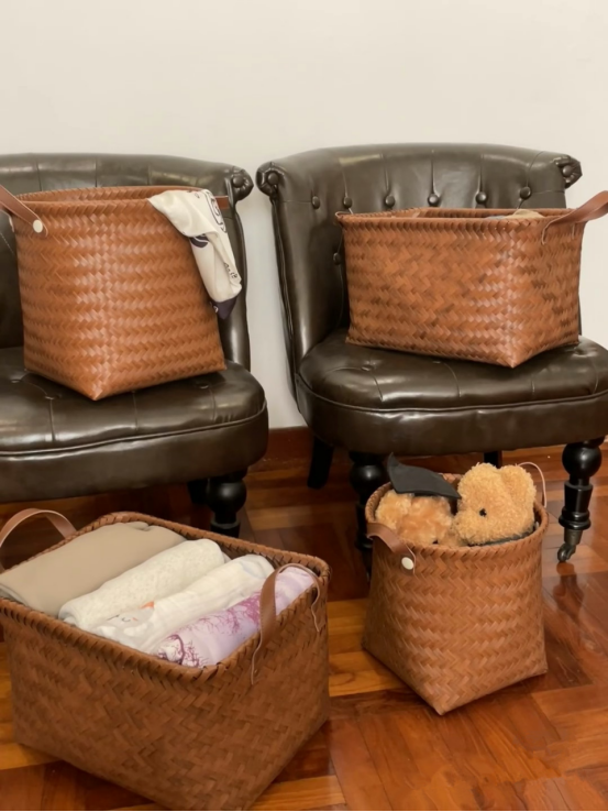 出口欧洲货❗【YiLuoShan复古仿藤编收纳筐/收纳桶】💥老手艺人匠心编织〰️纯手工制作🏆衣服/书本/零食/玩具/杂物/瓜果蔬果/万物皆可收纳❗