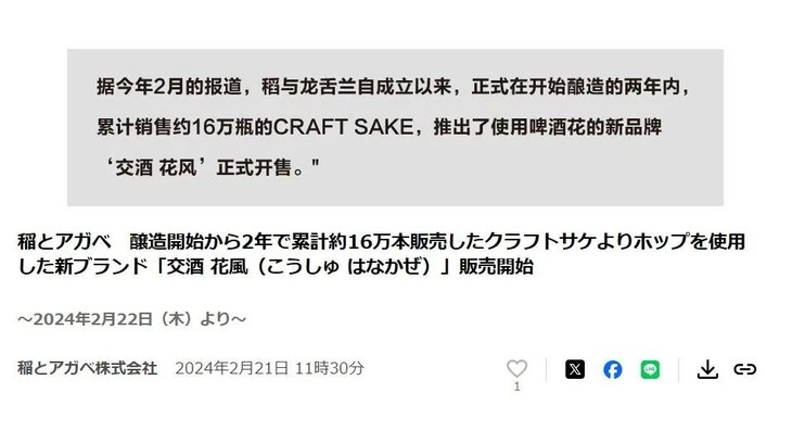 而这款酒在日本本土市场取得了巨大的成功,在不到两年的时间就完成了16万瓶的销售成绩,但另一方面来说,因为是小批量的精酿清酒,这么大的需求,市场上还有很多声音表示买不到,而我们新先聚为大家带来最新的配额!喜欢的朋友们千万不要错过哦!