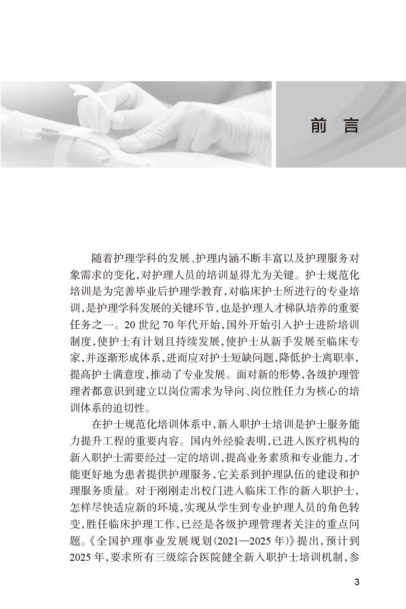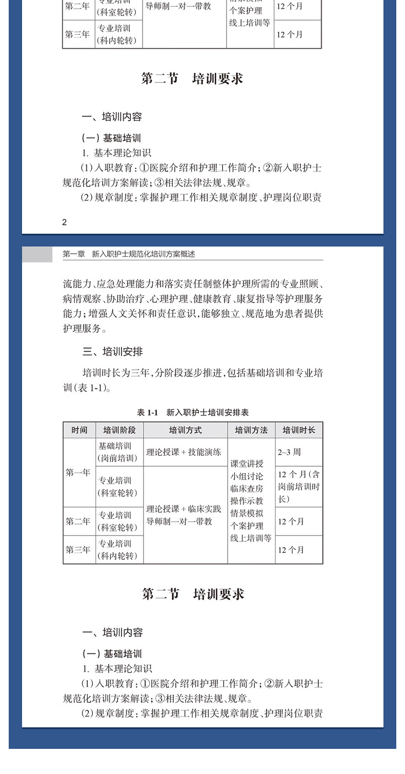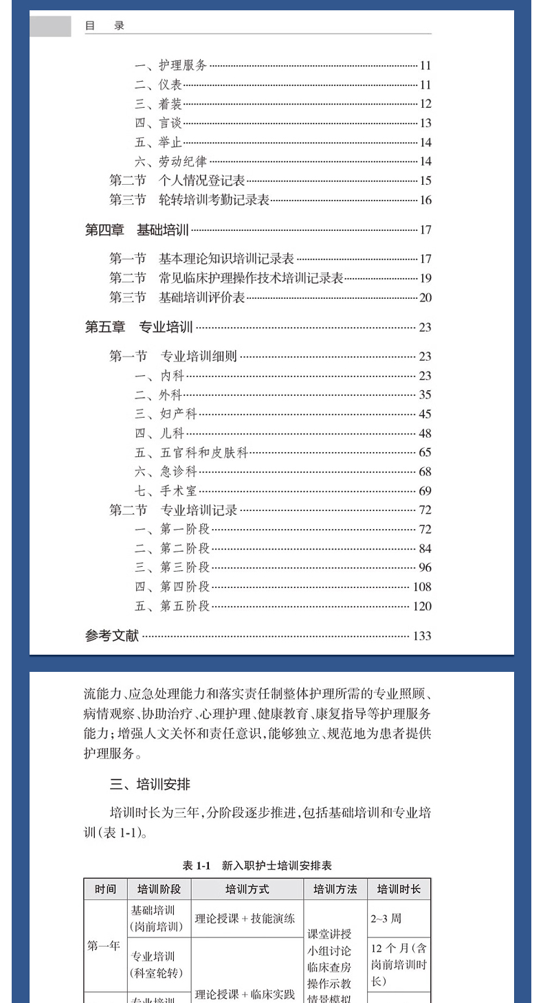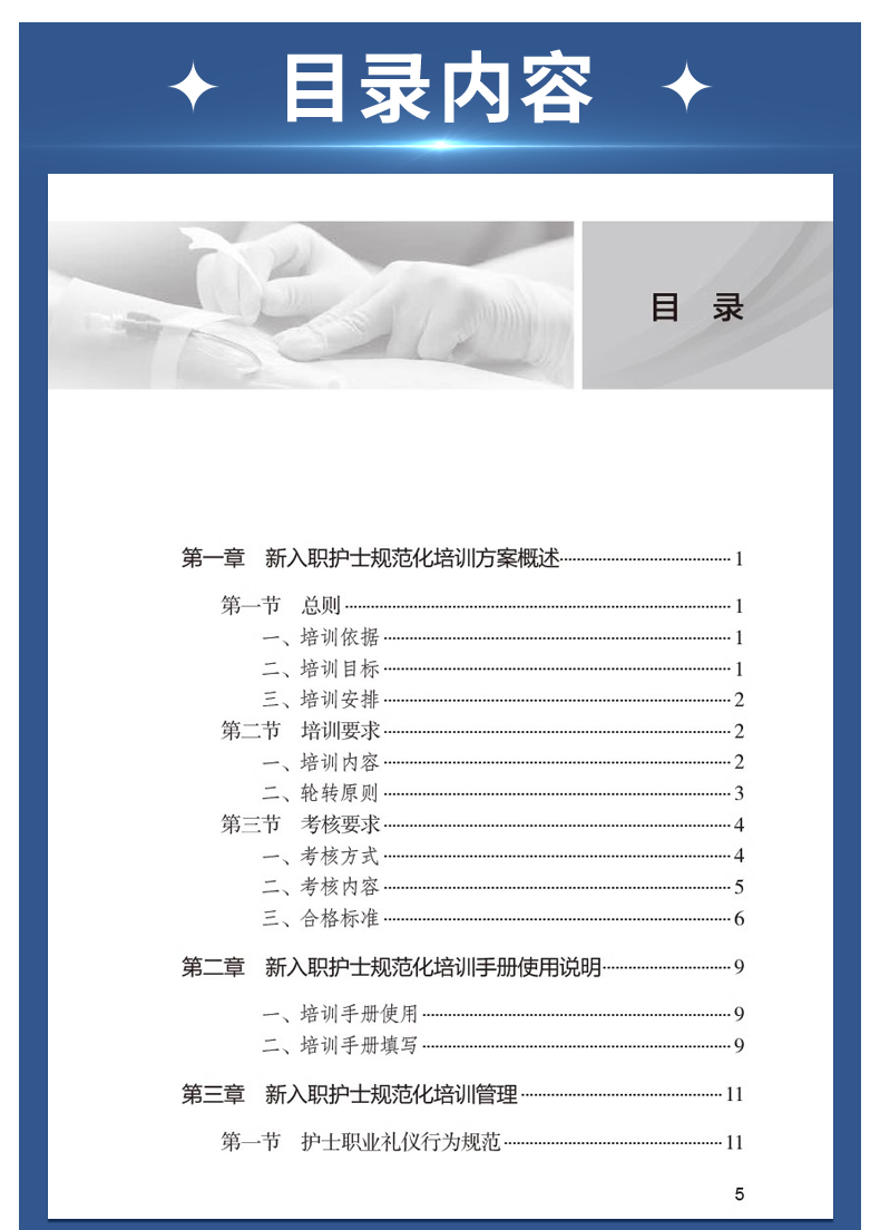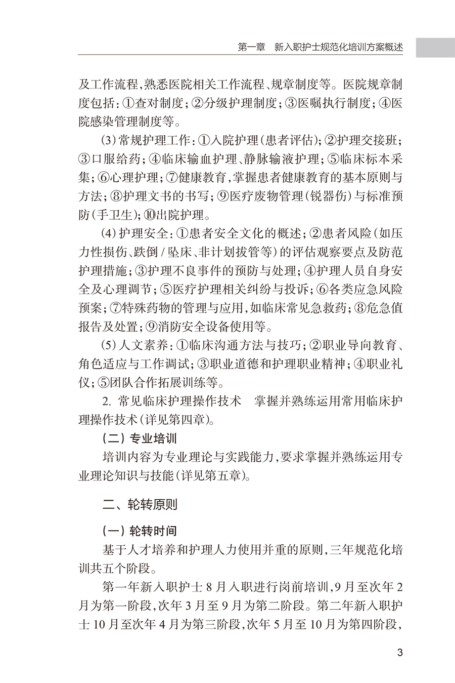 本书主要结构包括新护士规范化培训的整体方案(包括培训依据、培训目标、培训安排、培训要求、考核要求)、手册的使用说明、新护士规范化培训的管理、基础培训及专业培训的记录、各阶段的评价记录等。此外,此版《新入职护士规范化培训手册》在原版结构框架基础上,结合“大纲”要求及新护士临床护理岗位胜任力特点,新增培训指南部分,涵盖各个专业的培训细则,具有较强的实操性和推广性。能够为护理管理者、临床护理师资开展新护士规范化培训工作提供参考和依据,便于新护士明确培养目标,记录培训过程,掌握培训内容。