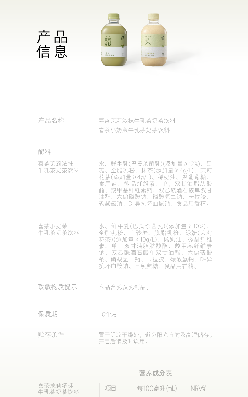 喜茶小奶茉牛乳茶奶茶饮料350ml