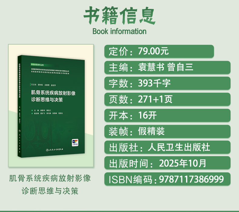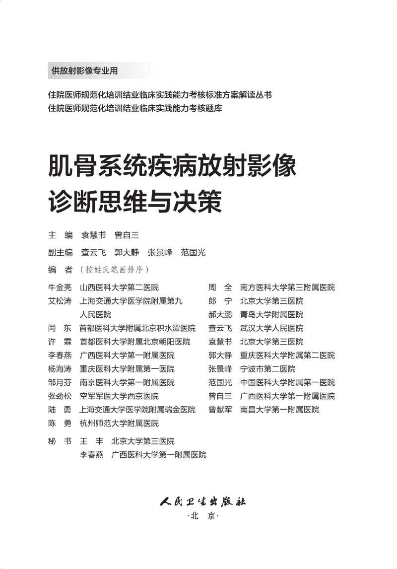 肌骨系统疾病放射影像诊断思维与决策 住院医师规范化培训结业临床实践能力考核题库 袁慧书 曾自三 9787117386999 人民卫生出版社