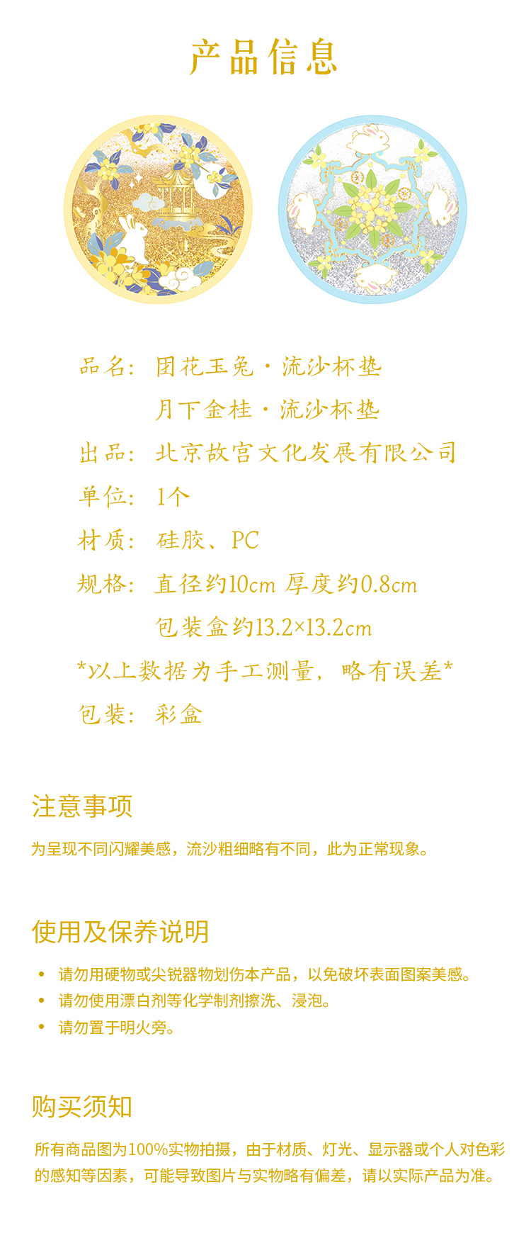 【故宫杯垫】故宫小玉兔流沙杯垫硅胶隔热防滑杯垫