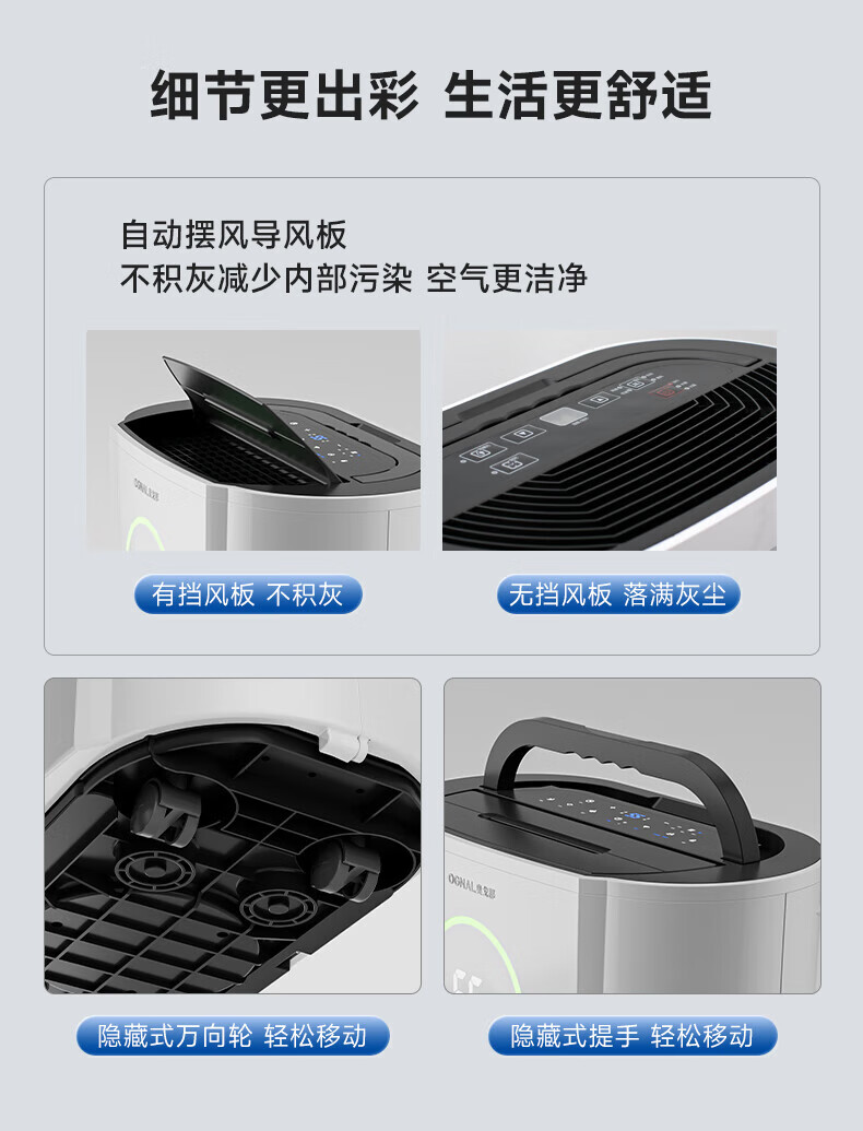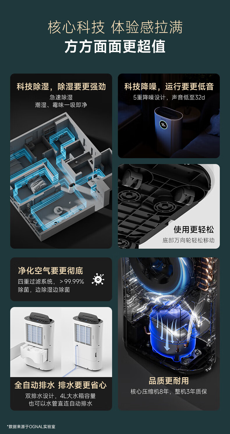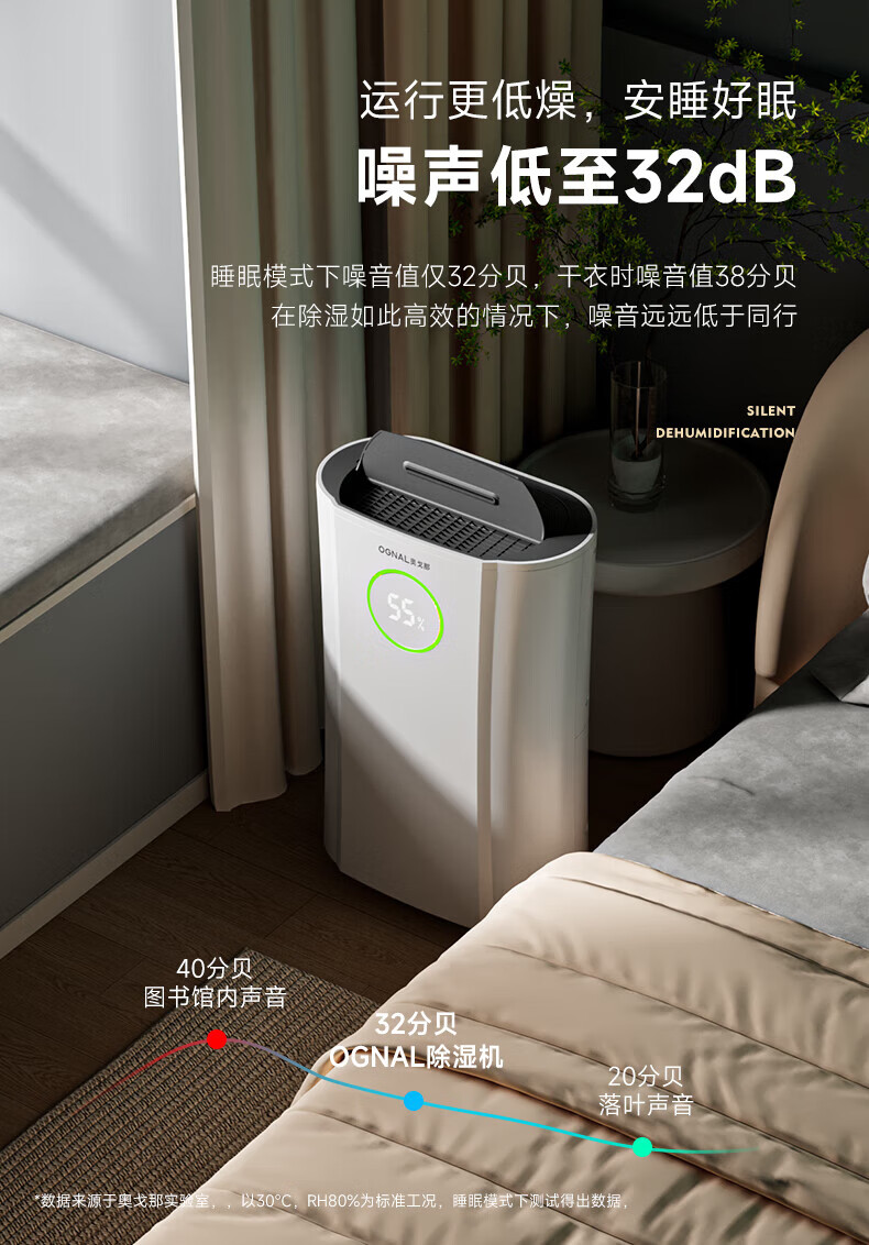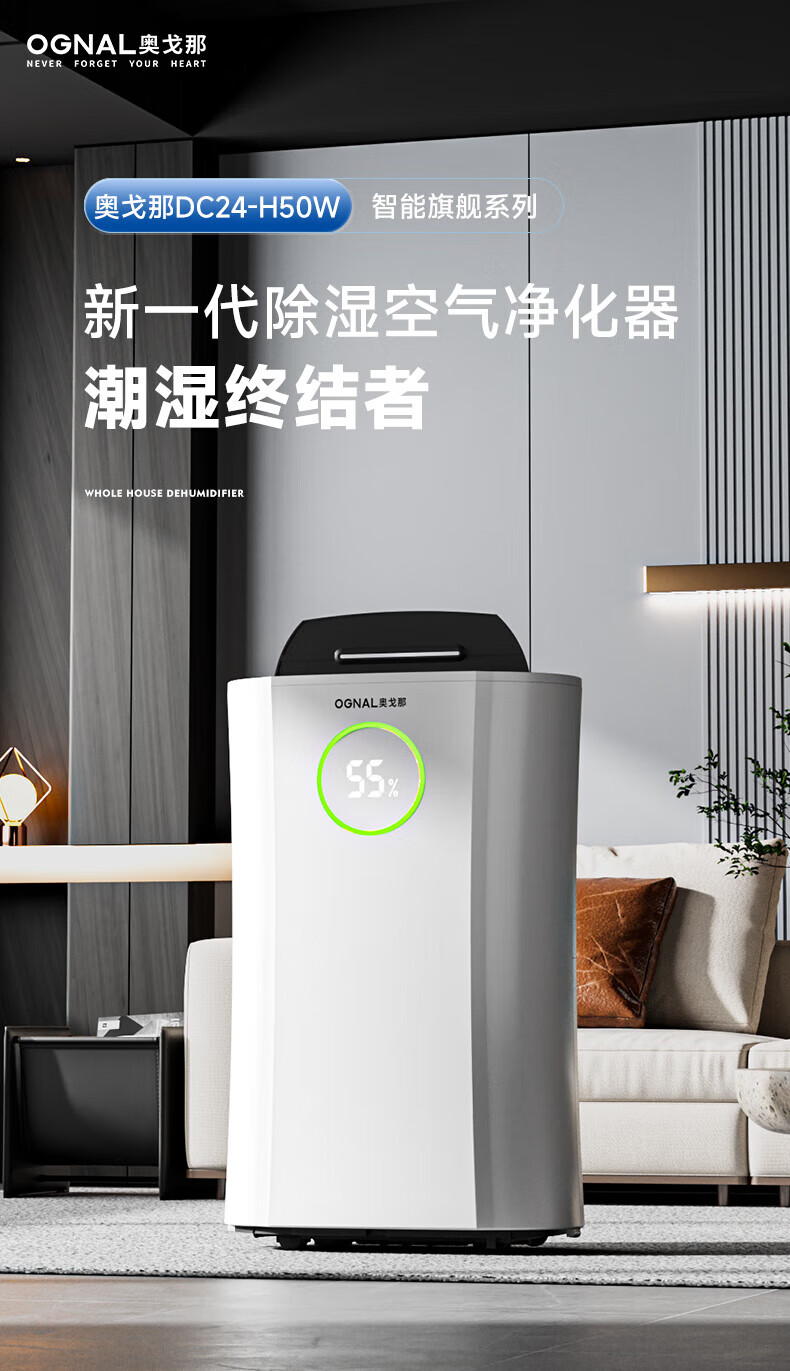 OGNAL奥戈那英国家用除湿机空气净化一体抽湿机别墅室内地下室吸湿回南天防潮梅雨季干燥机祛湿大面积 24L/天(20~180㎡ )16L(0~120㎡)