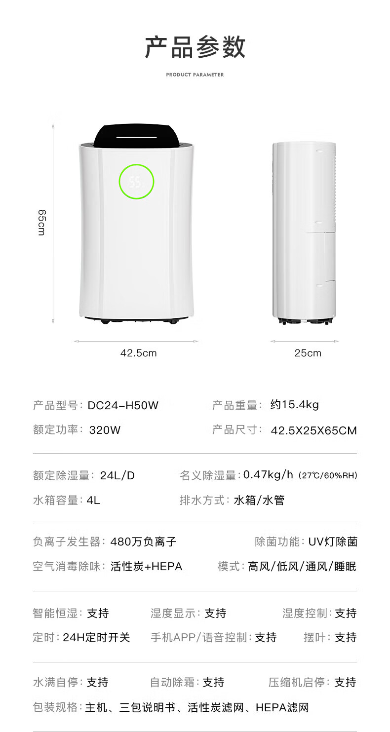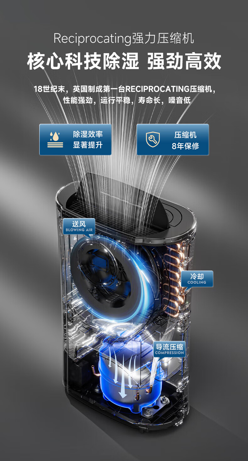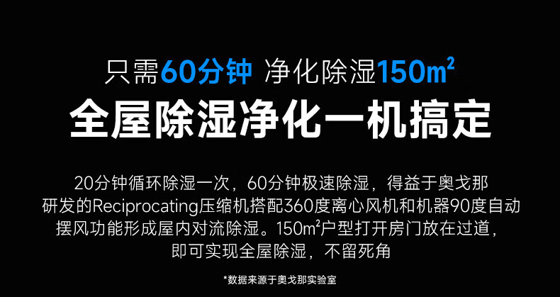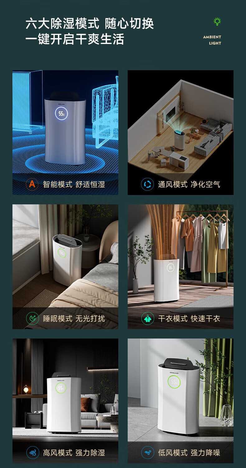 OGNAL奥戈那英国家用除湿机空气净化一体抽湿机别墅室内地下室吸湿回南天防潮梅雨季干燥机祛湿大面积 24L/天(20~180㎡ )16L(0~120㎡)