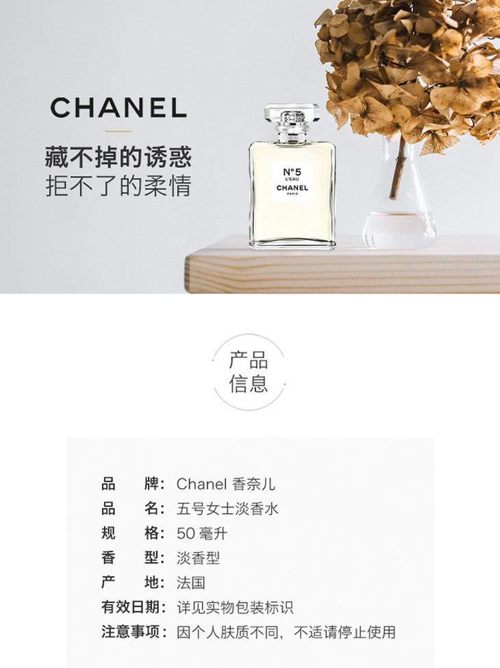 【香港直邮】法国香奈儿CHANEL 5号之水女士香水EDT50ML
