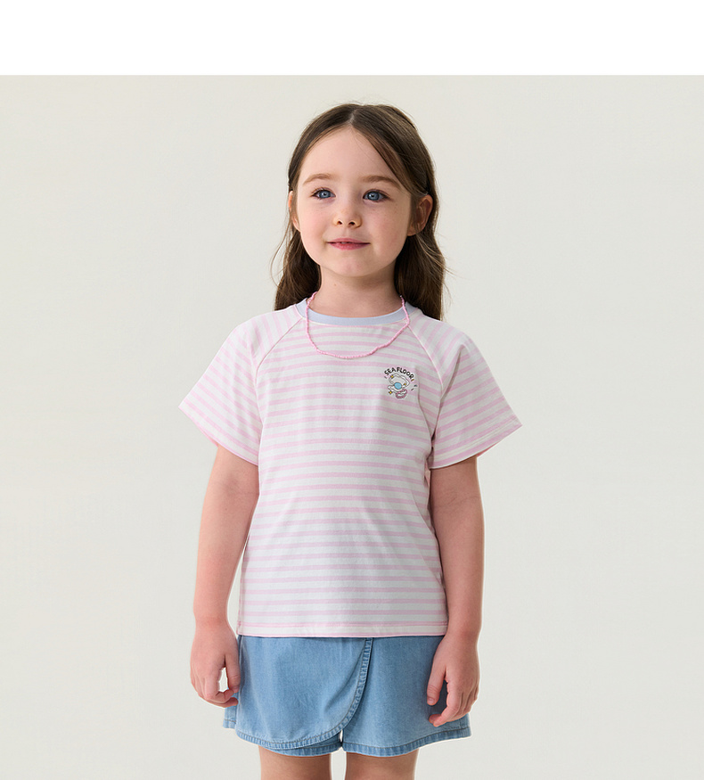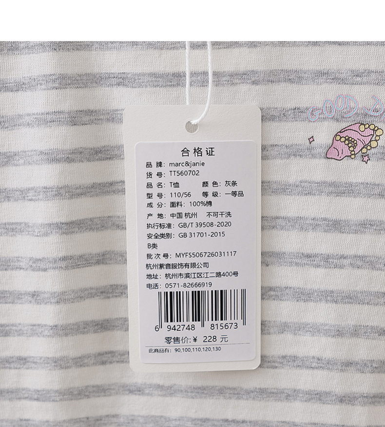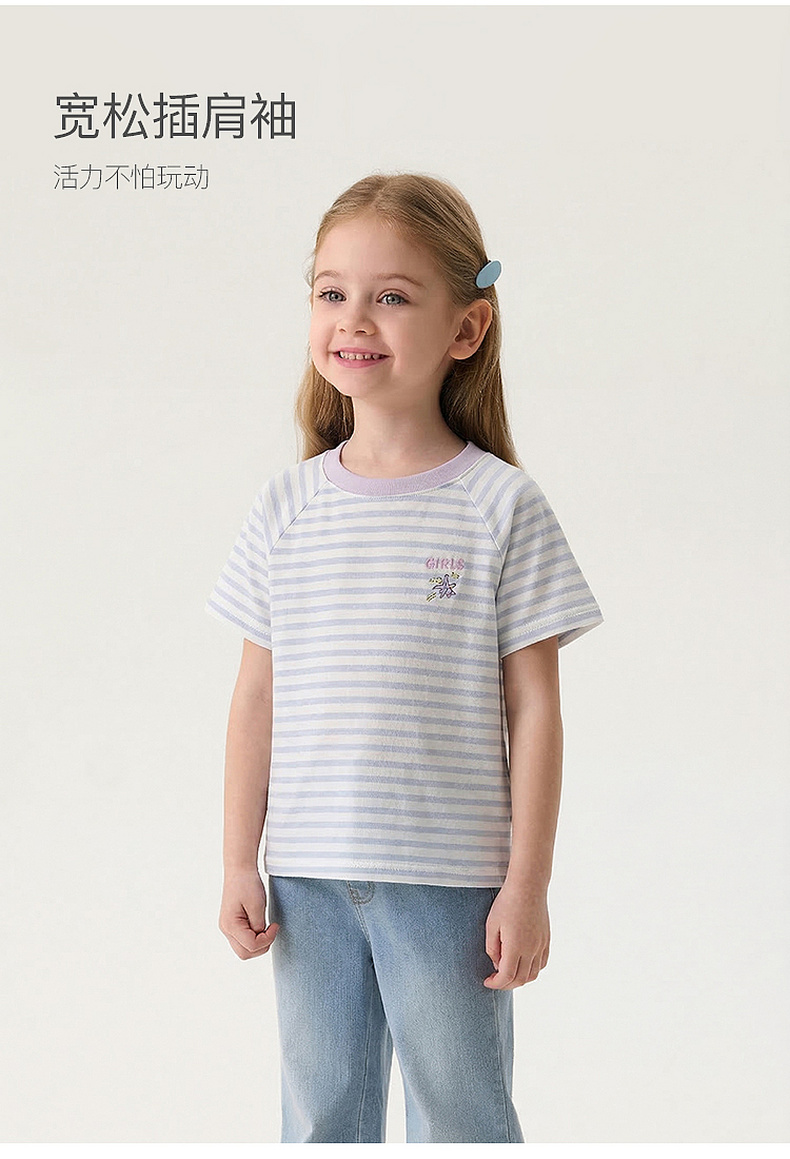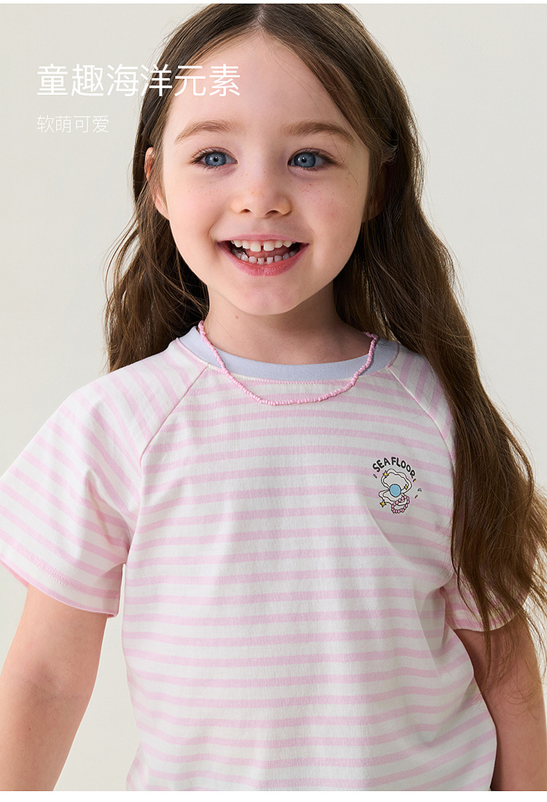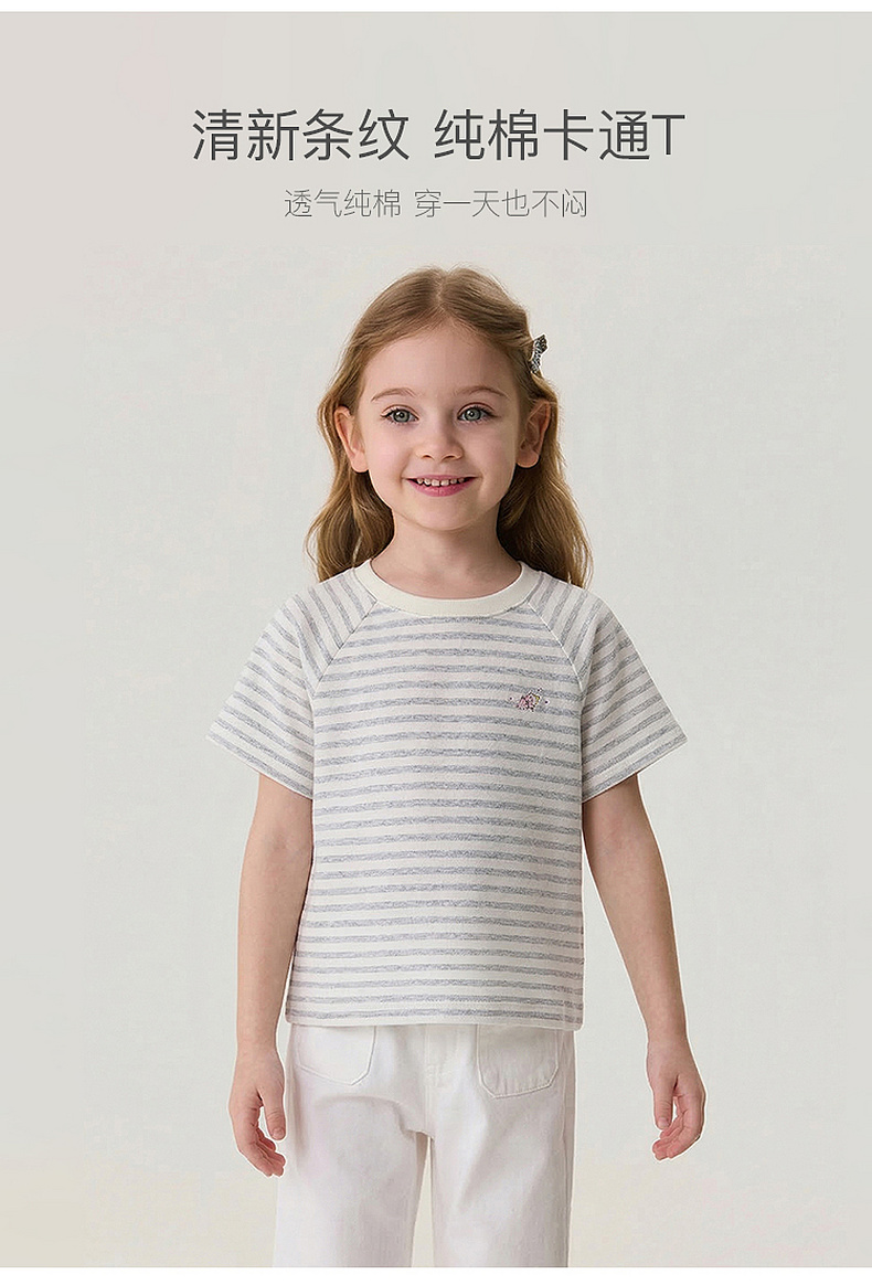马克珍妮缤纷条纹女童纯棉卡通T2026年夏装新款560702