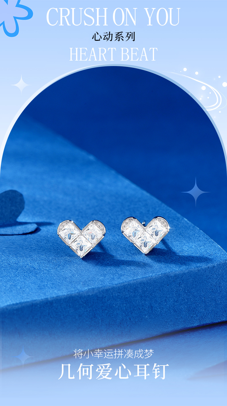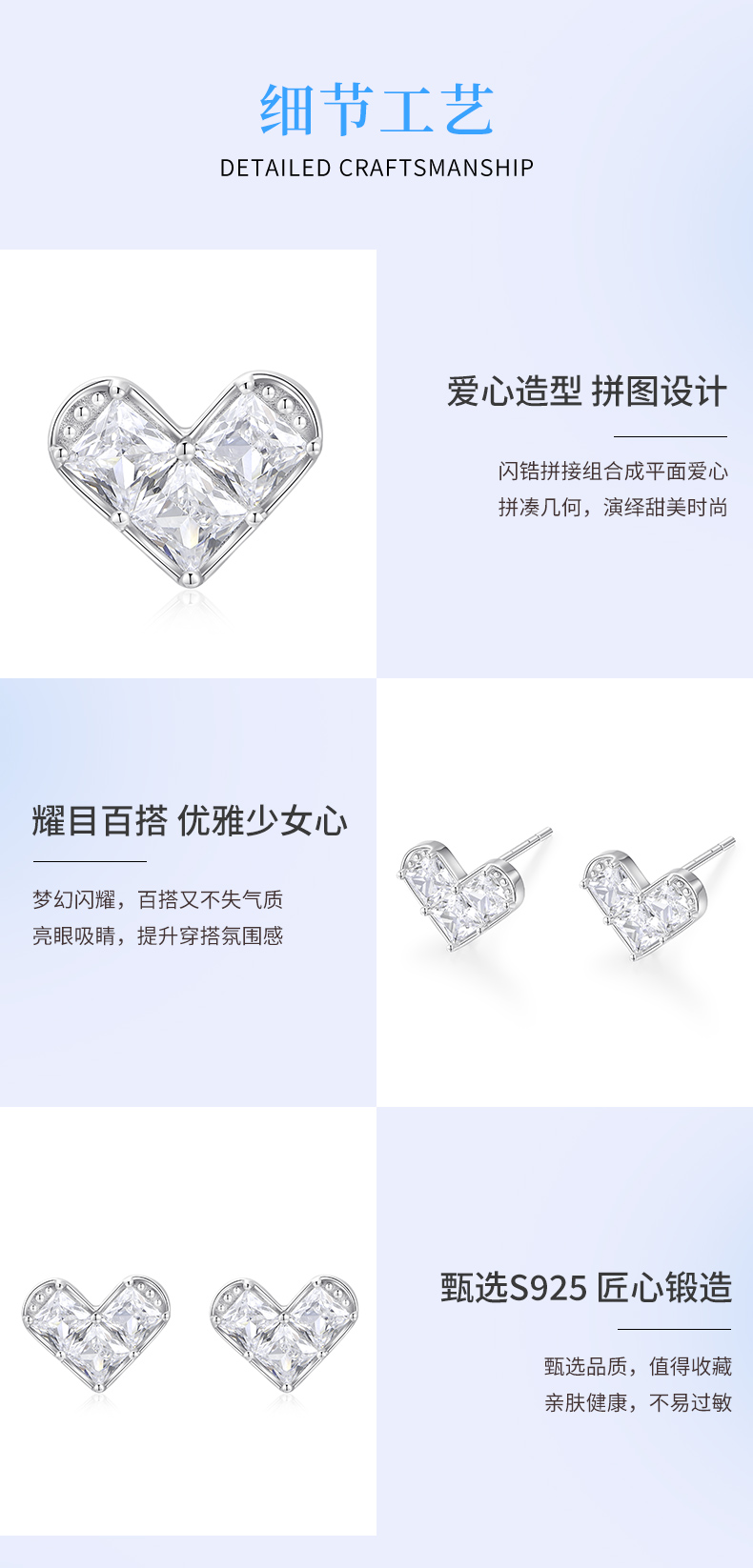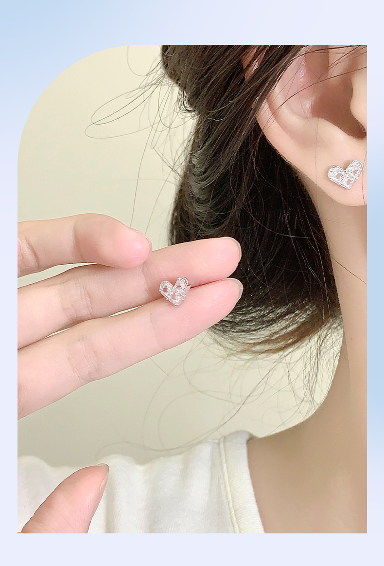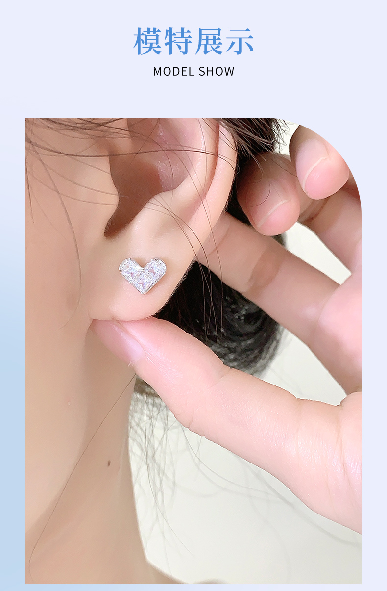 卡蒂罗/KADER 几何爱心耳钉 满镶宝石闪耀璀璨甜美心形养耳洞耳饰 简约时尚轻奢小众睡觉免摘配饰 925银