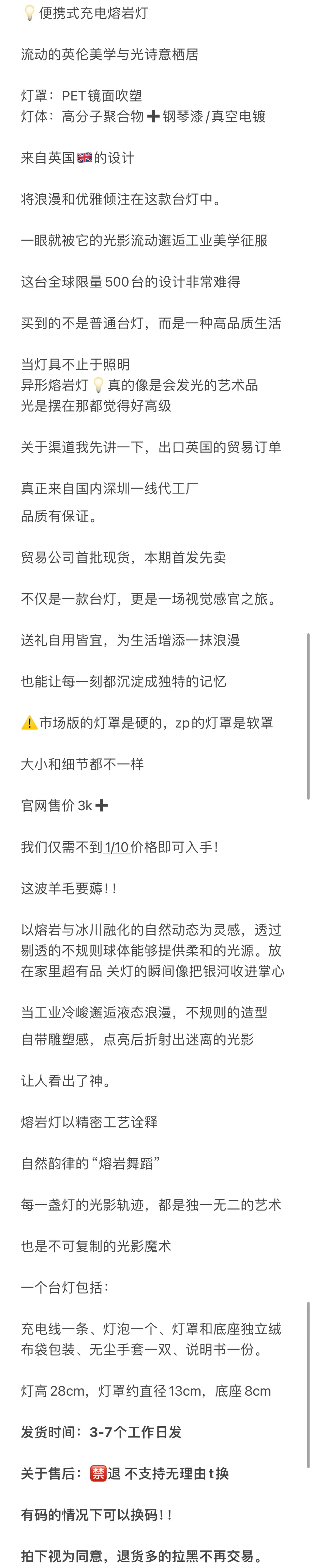 居家必备 氛围感神器 便携式充电熔岩灯 金属风钢琴烤漆 真空电镀 可移动台灯