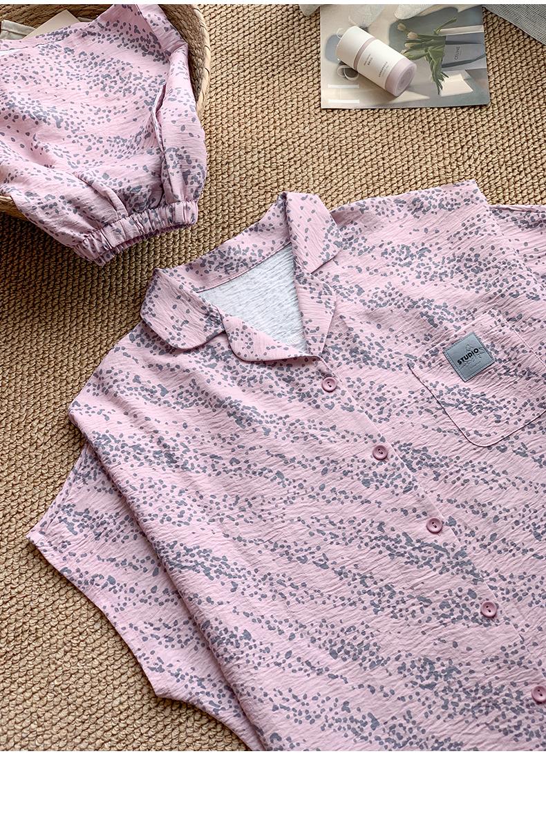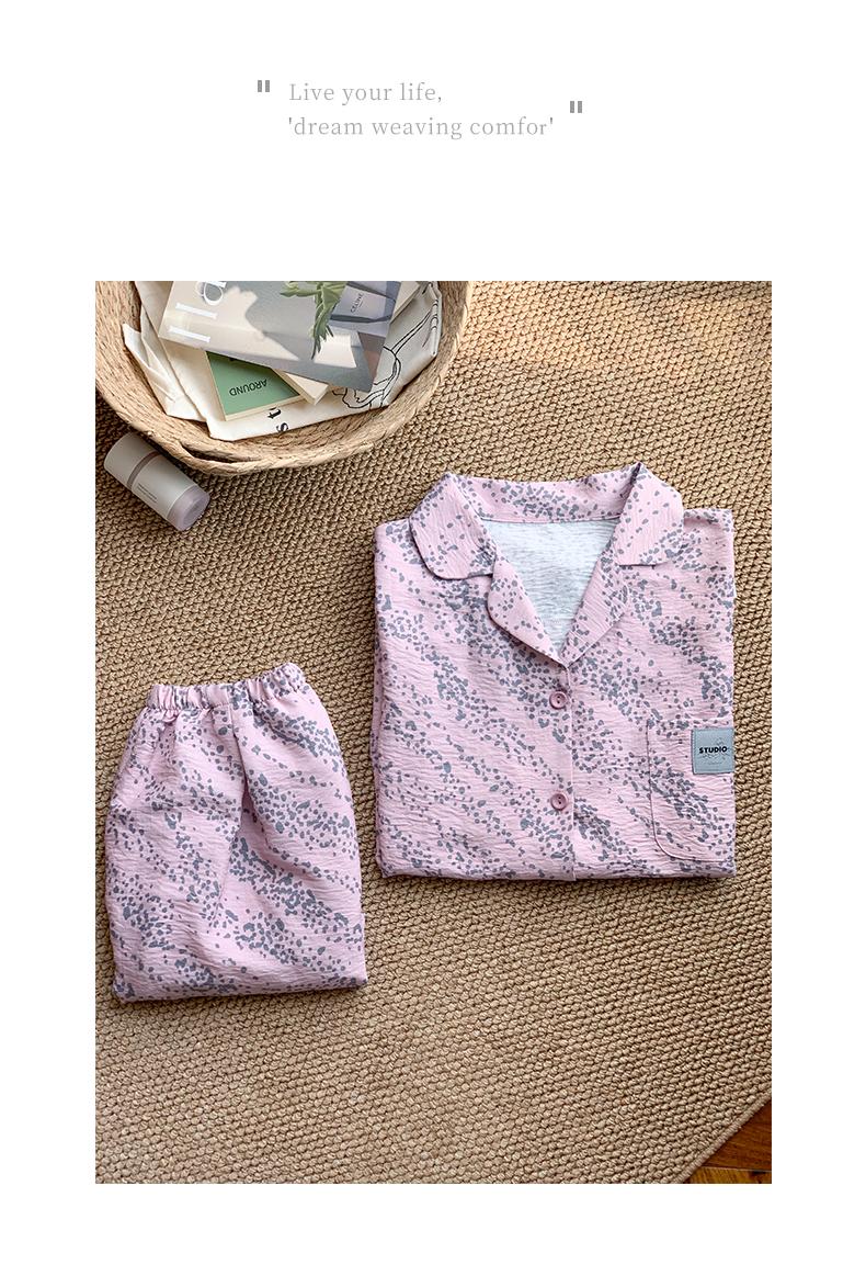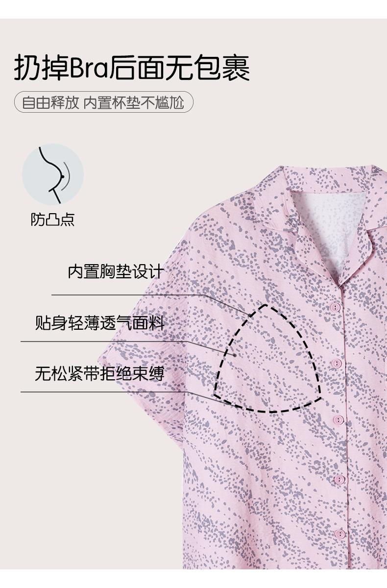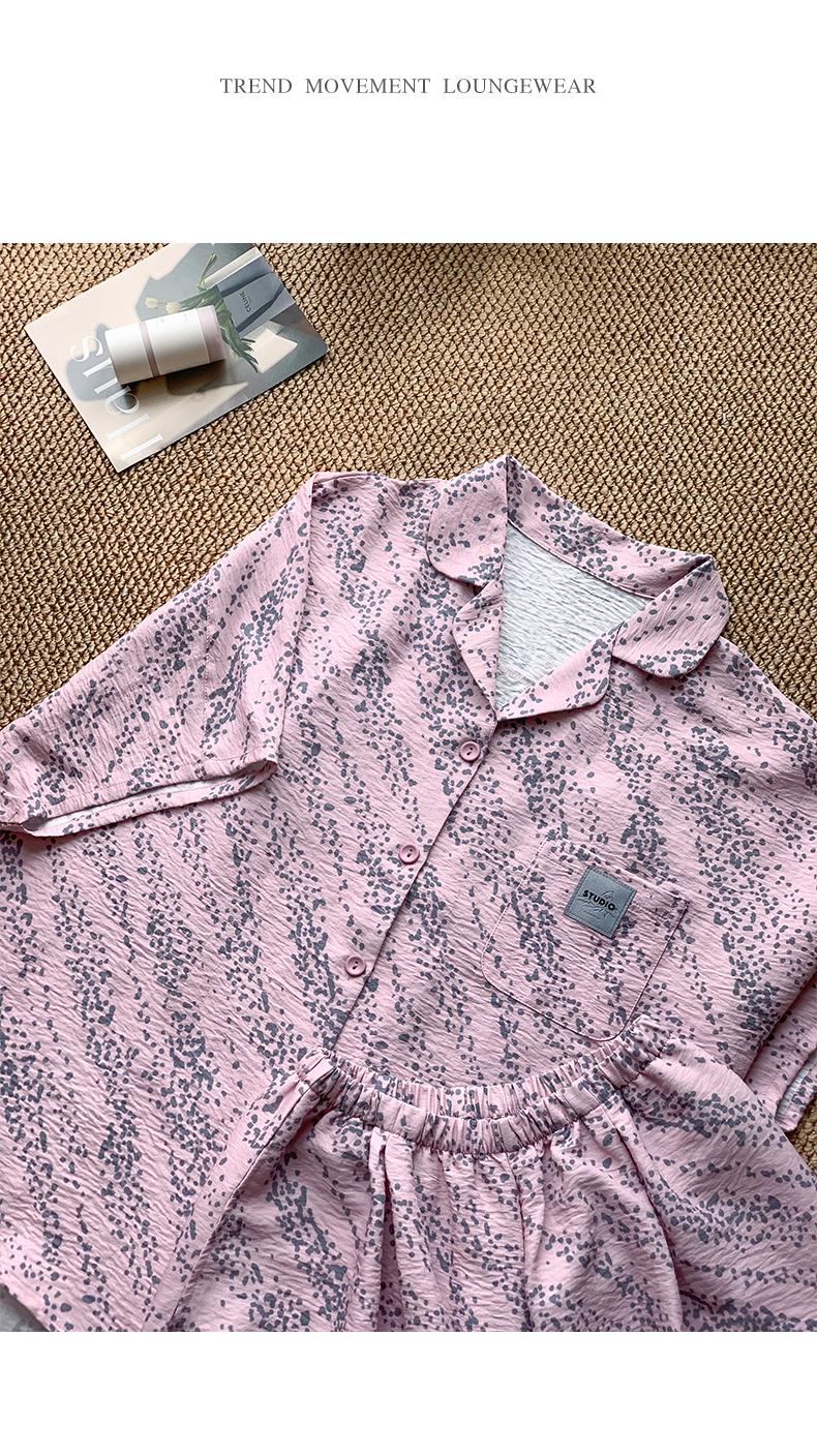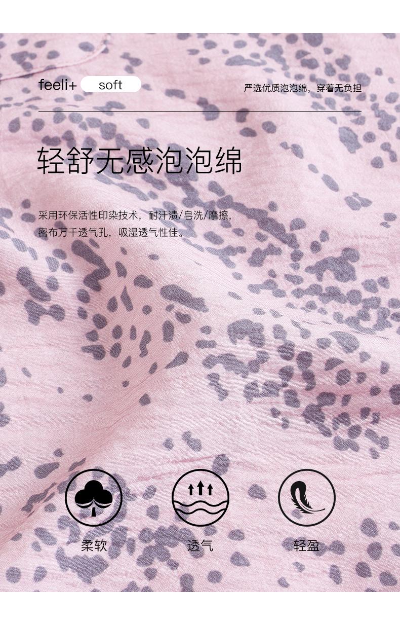 可人儿小众设计师新款泡泡绵女士睡衣夏季短袖可外出家居服三件套