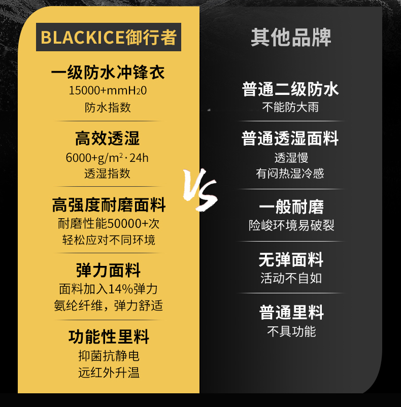 黑冰24新款单层冲锋衣男女同款暴雨级防水耐磨透湿压胶御行者冲锋衣2303
