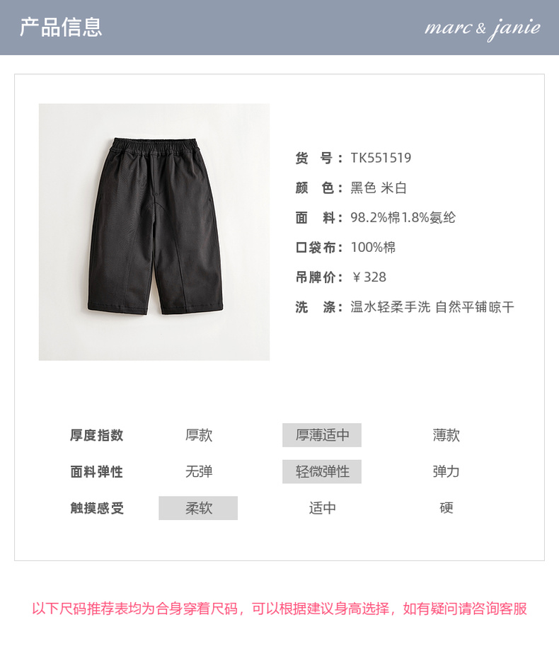 马克珍妮女童时尚挺括百搭萝卜裤2025年秋装新款551519