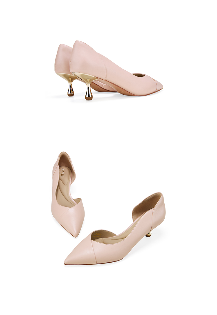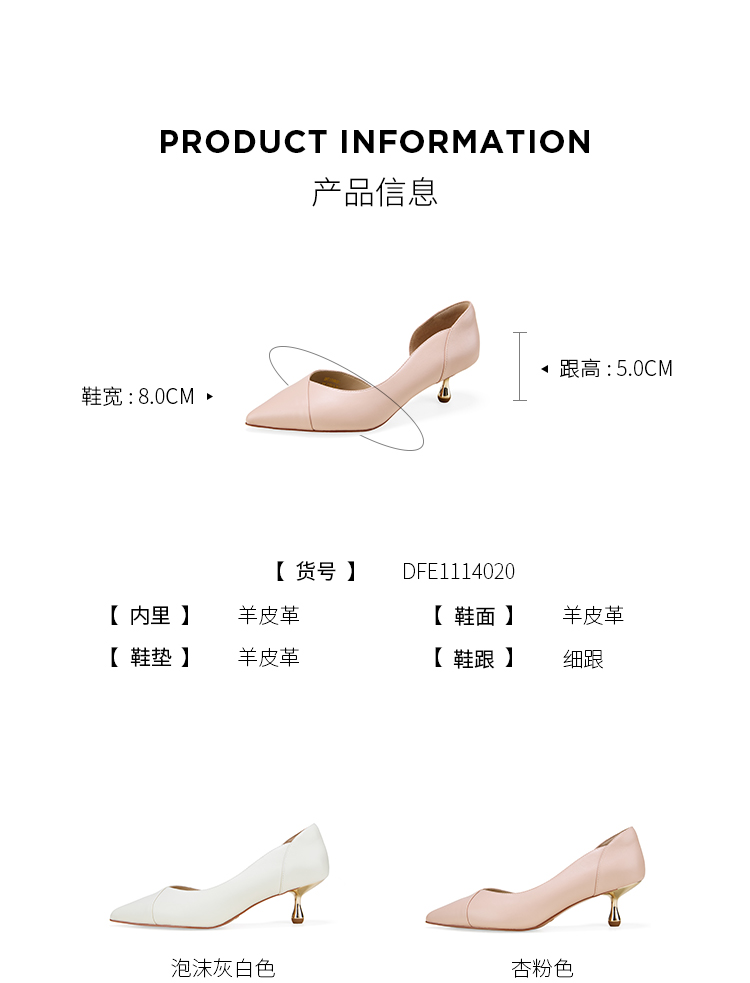 Dfuse迪芙斯2026春季新款尖头中空细跟柔软羊皮通勤高跟单鞋女鞋DFE1114020