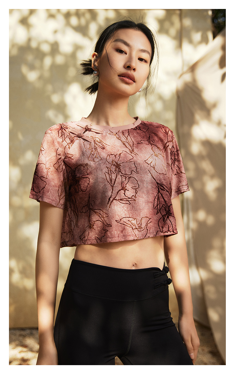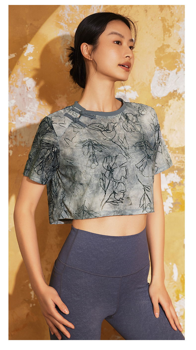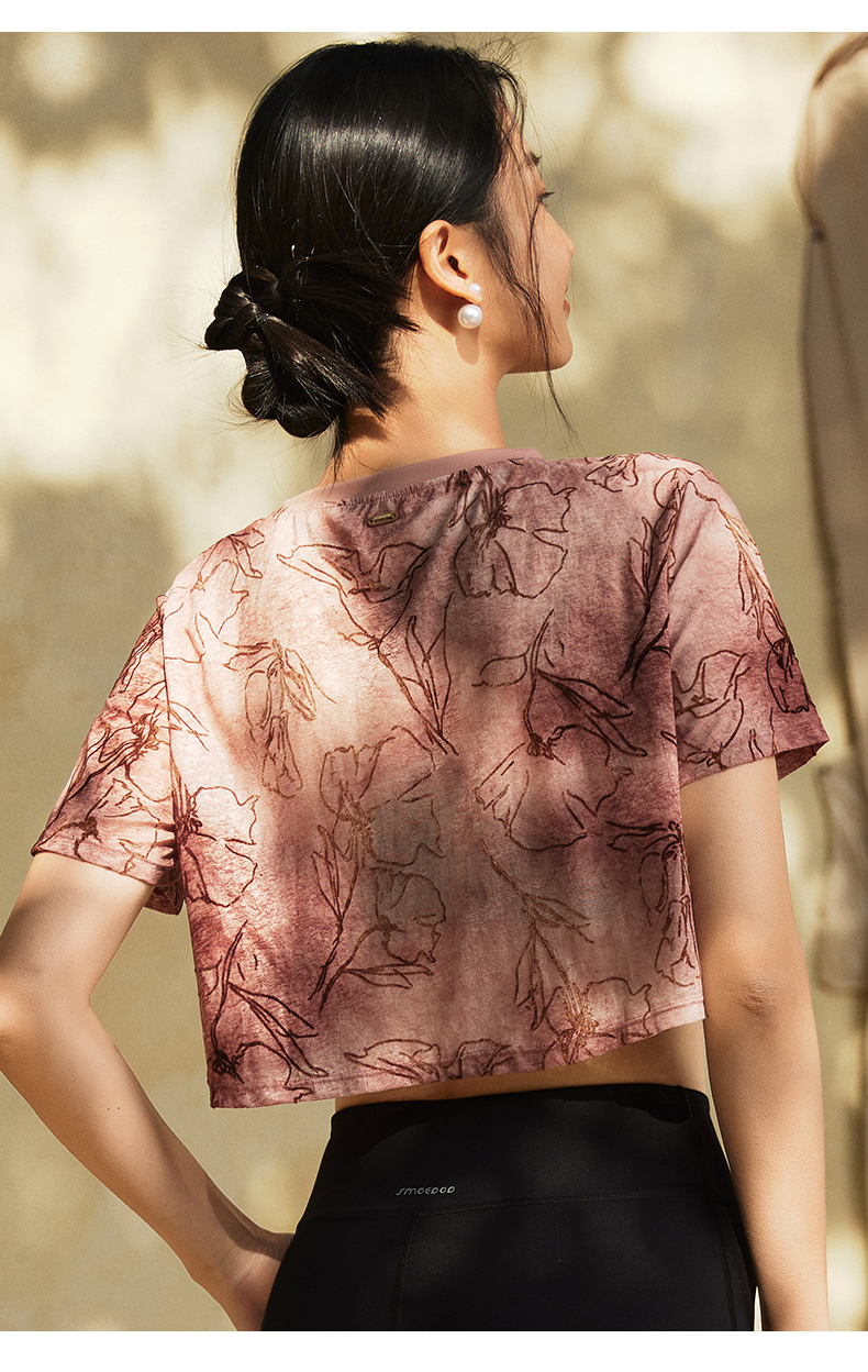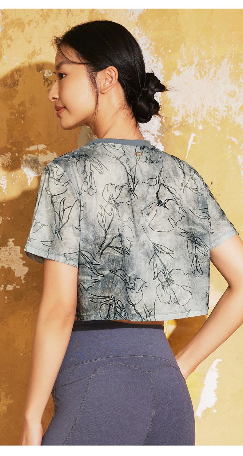 【3月活动】水沐伊朵夏瑜伽服印染T恤女罩衫宽松透气运动上衣50052