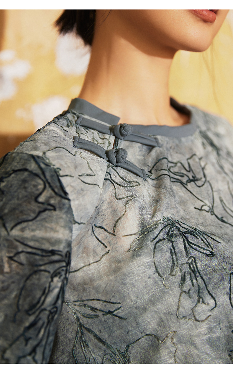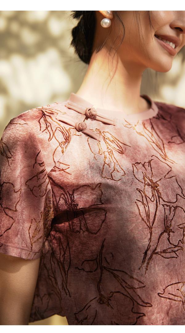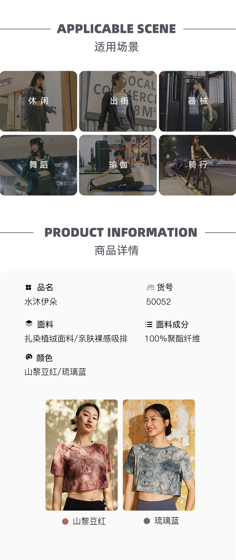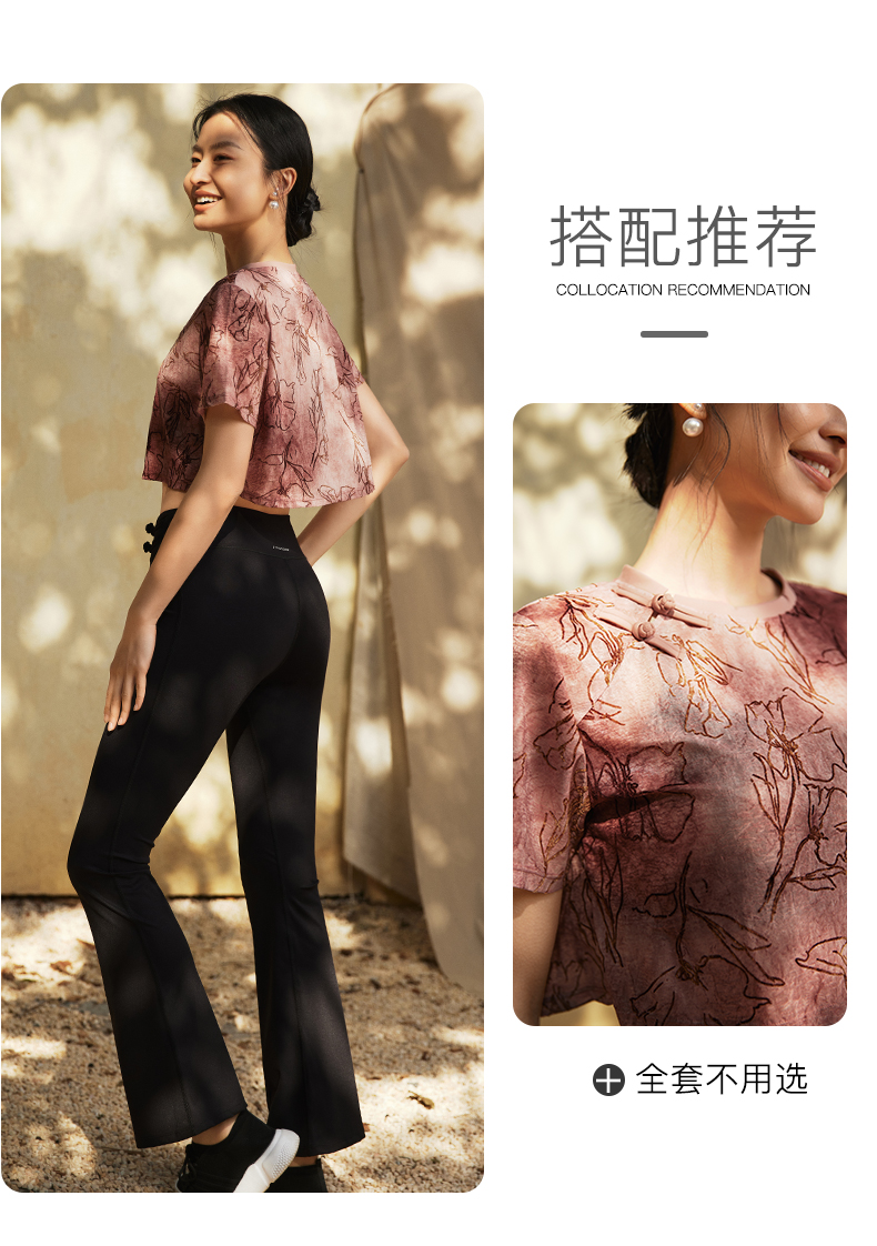 【3月活动】水沐伊朵夏瑜伽服印染T恤女罩衫宽松透气运动上衣50052