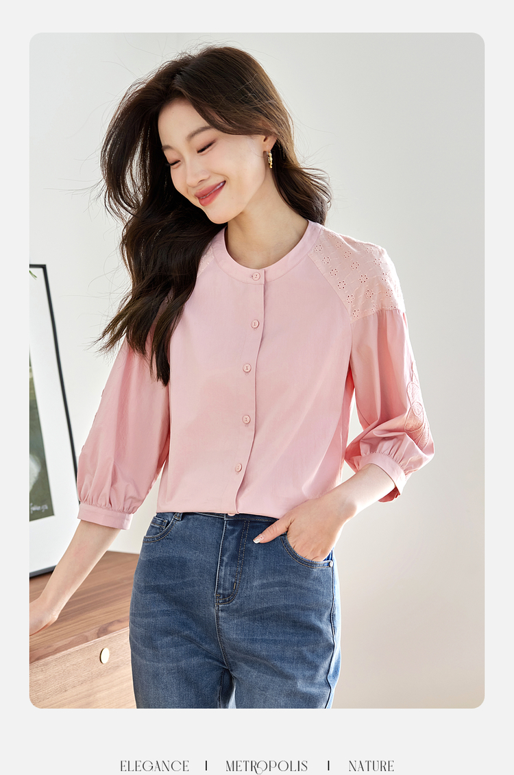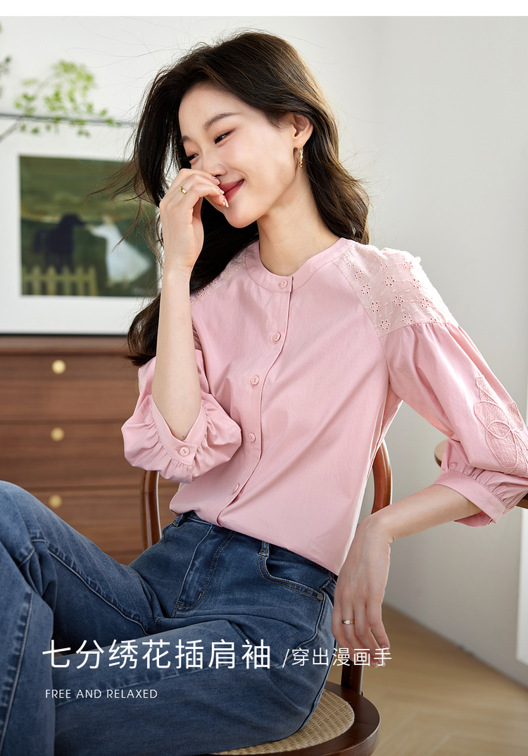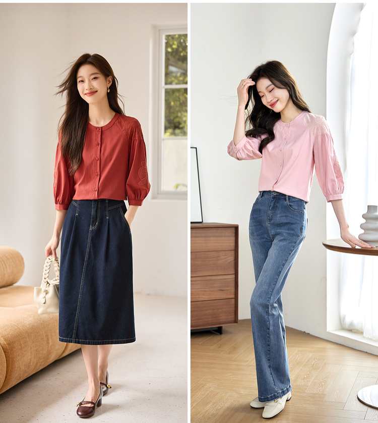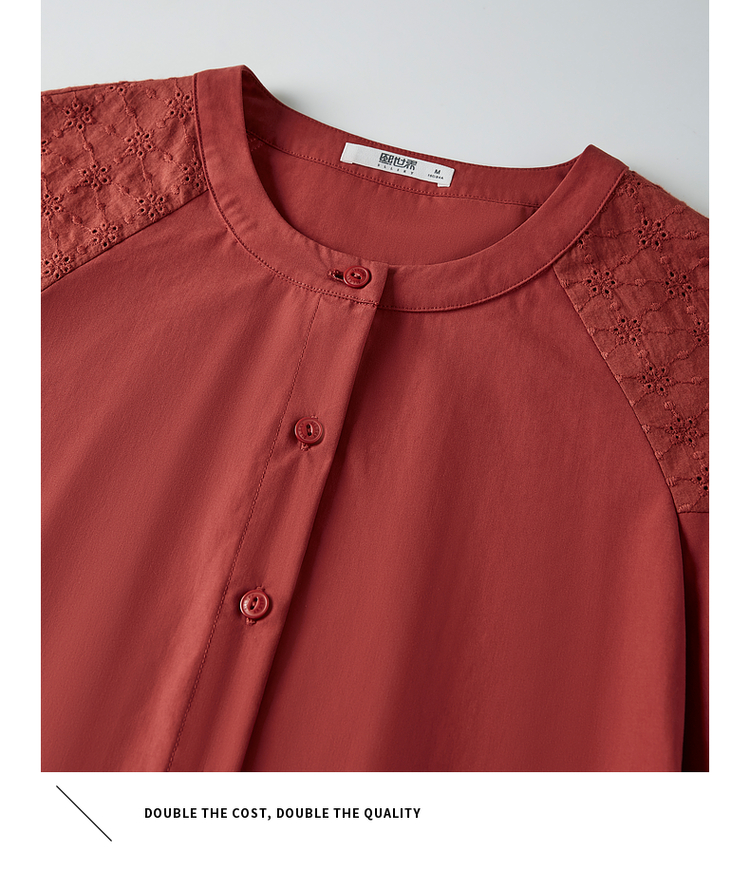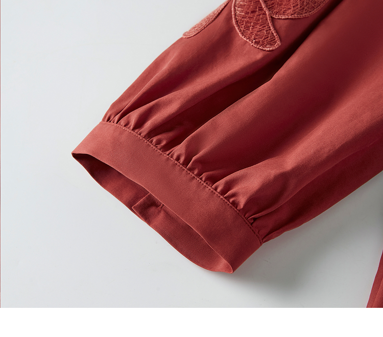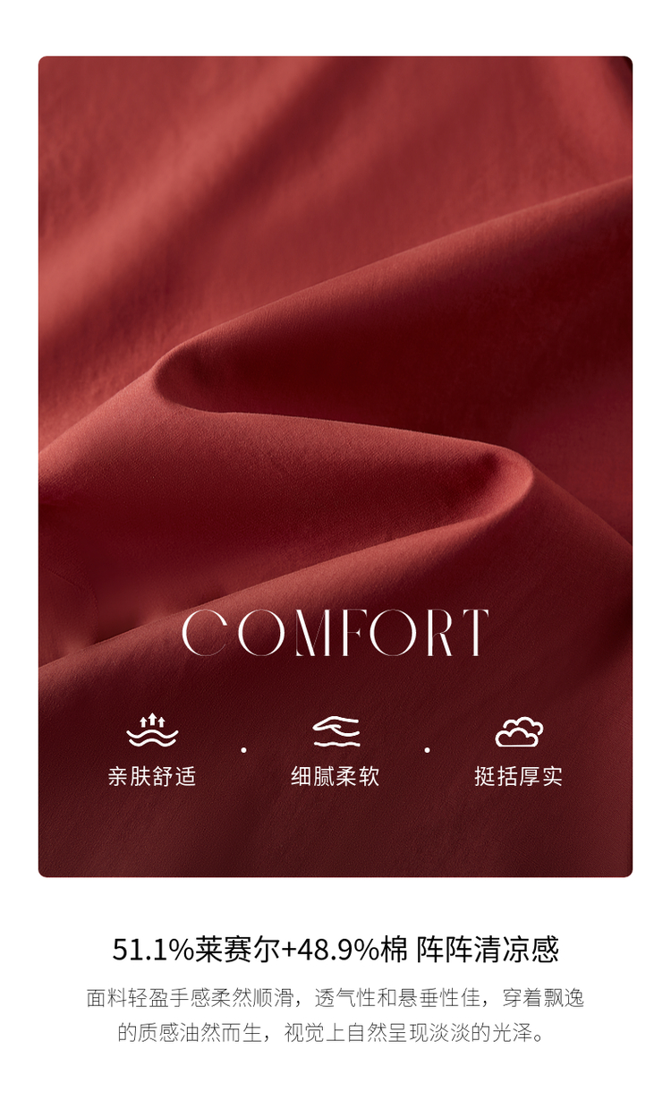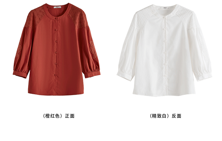 【专属特价】熙世界红色法式七分袖衬衣女2025初秋新款高端气质天丝衬衫上衣