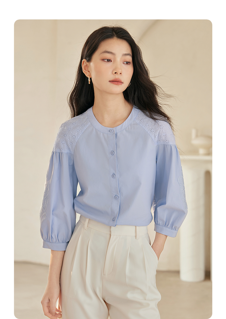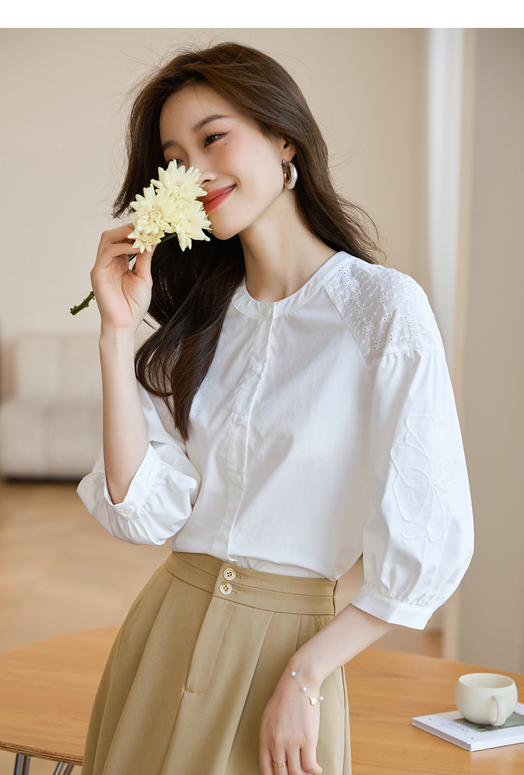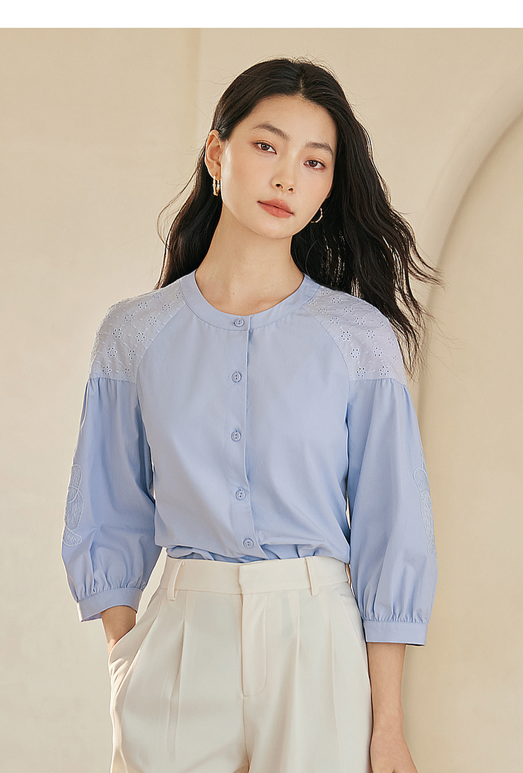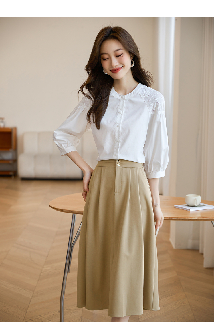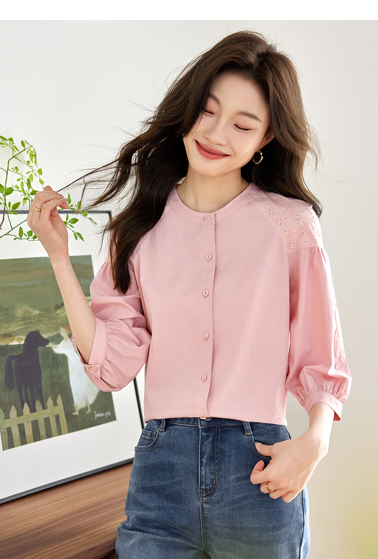 【专属特价】熙世界红色法式七分袖衬衣女2025初秋新款高端气质天丝衬衫上衣