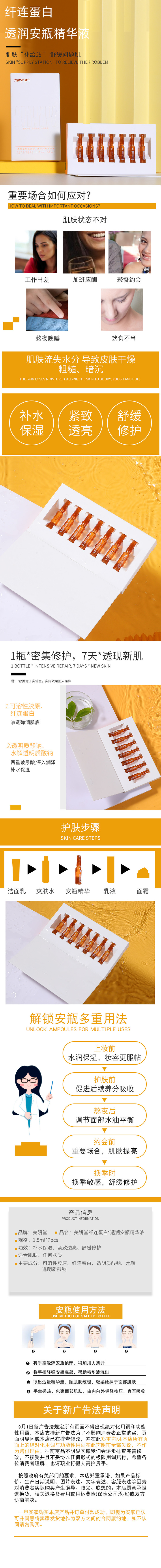 美妍堂纤连蛋白·透润安瓶精华液 1.5ml*7支/盒 最新上市产品 安瓶精华