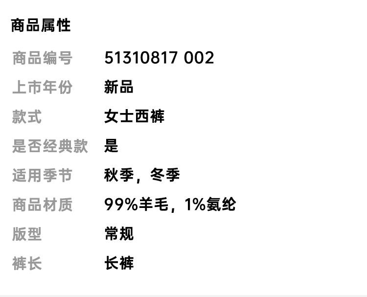 MAXMARA 女士 SOLANGE 格纹羊毛西裤 混色 51310817 002