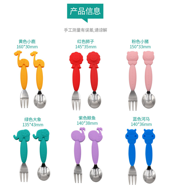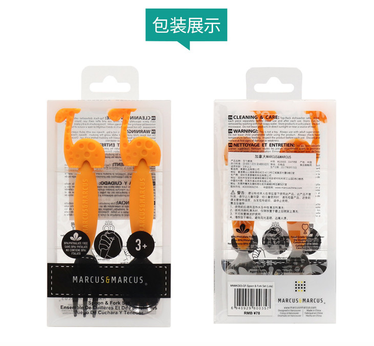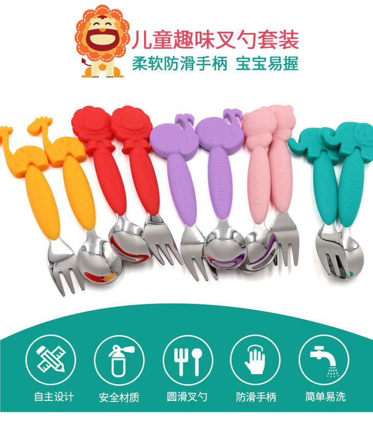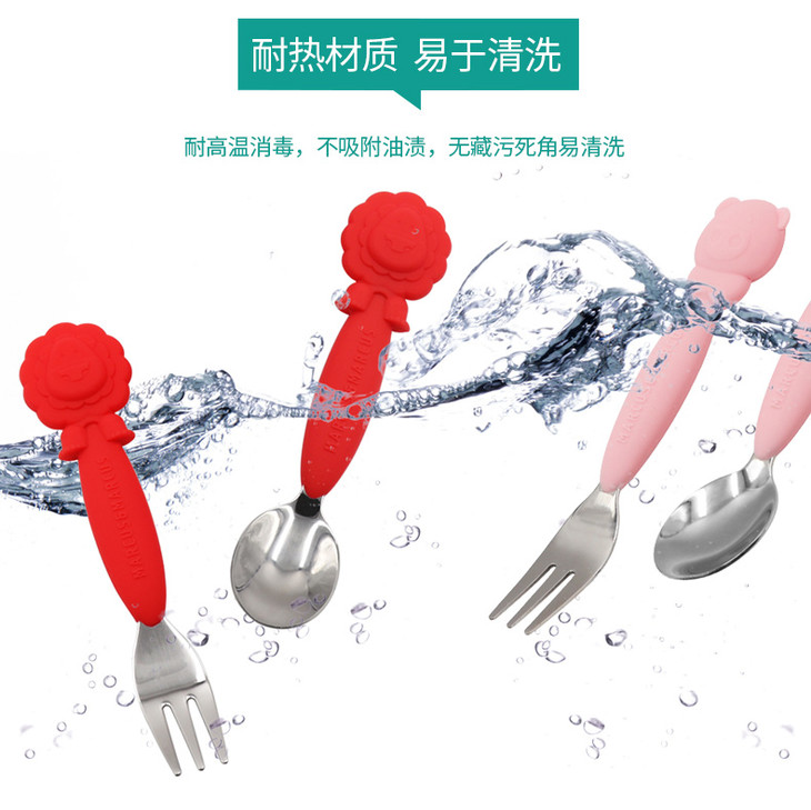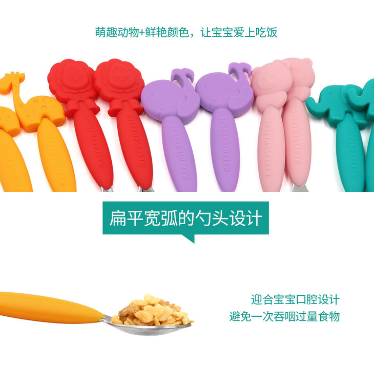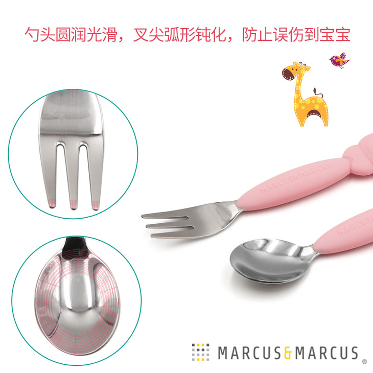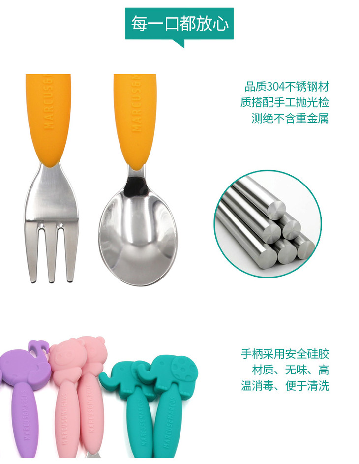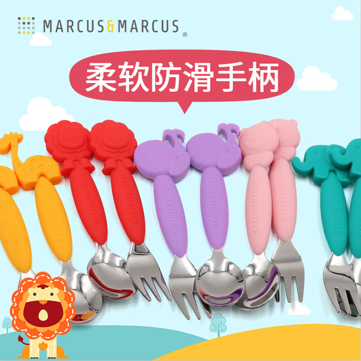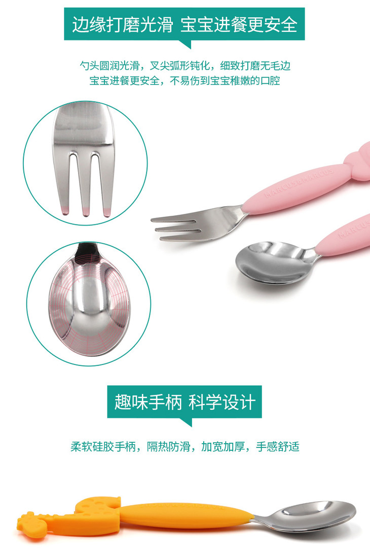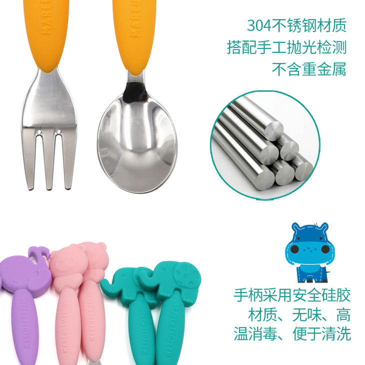 (超值)加拿大MARCUS叉勺宝宝婴儿儿童硅胶不锈钢叉子勺子套装学吃餐具