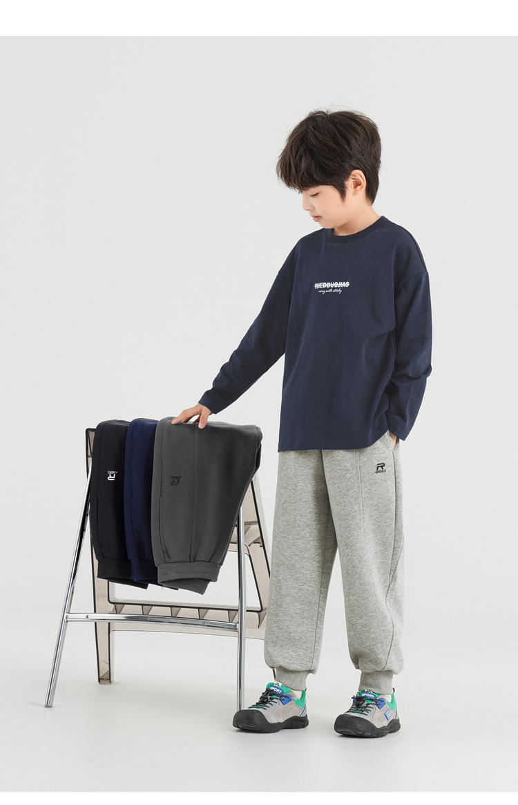 【件件底价,童装双倍积分】多多家男童卫裤运动裤抗起球2025春秋款新款儿童中大童刺绣潮裤子10991
