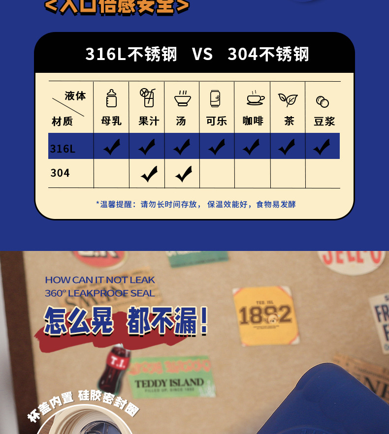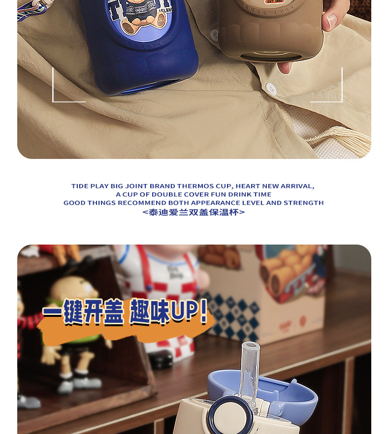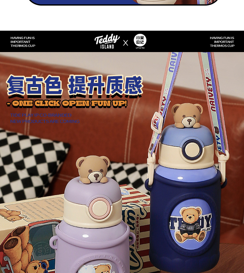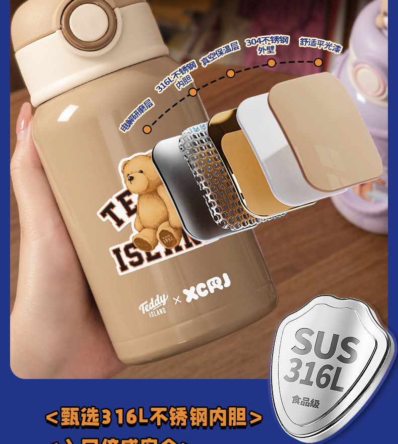 「三款配色!一杯双盖」小茶日记保温杯女生颜值儿童保温水杯316不锈钢新款学生杯子餐饮用具