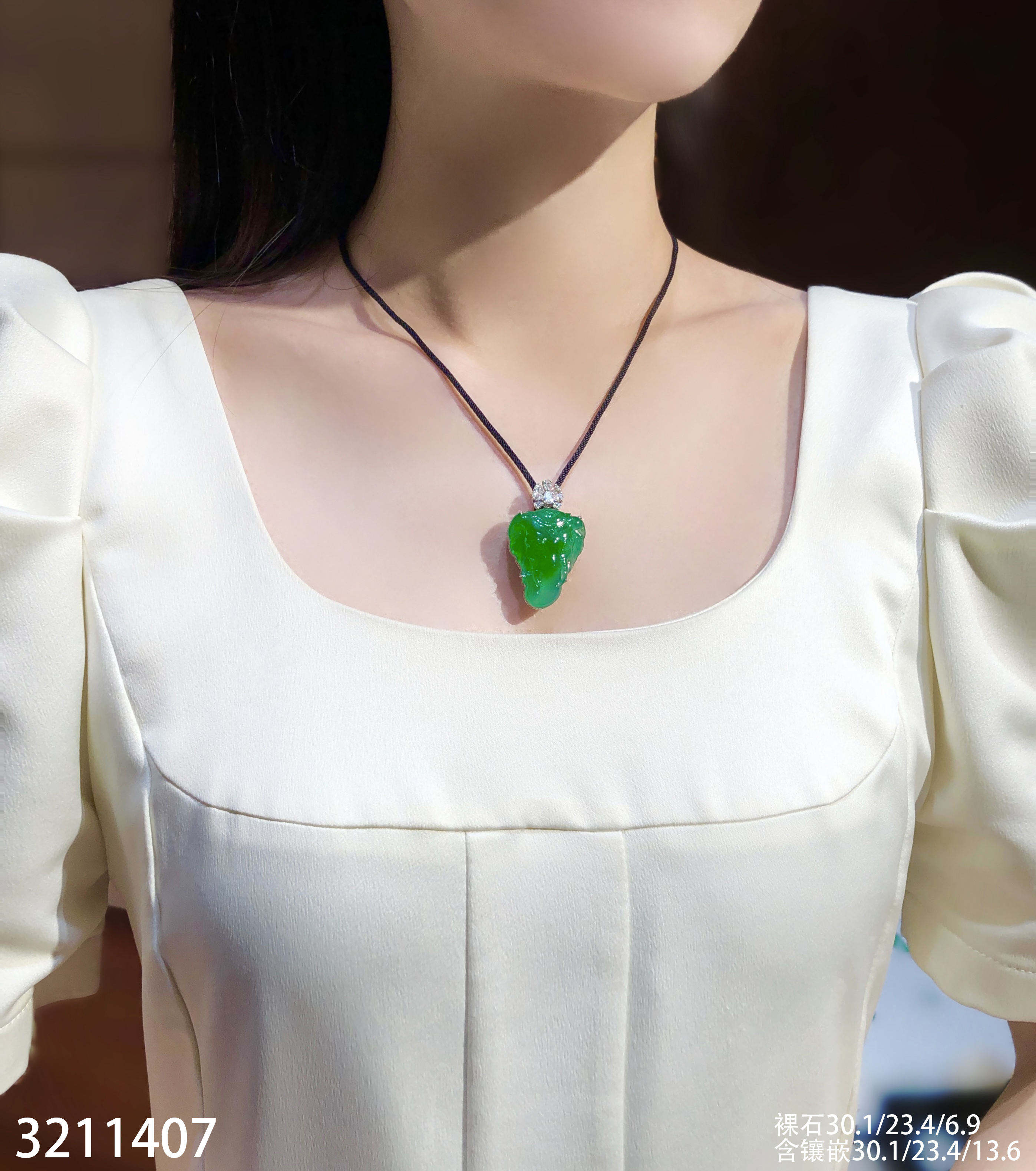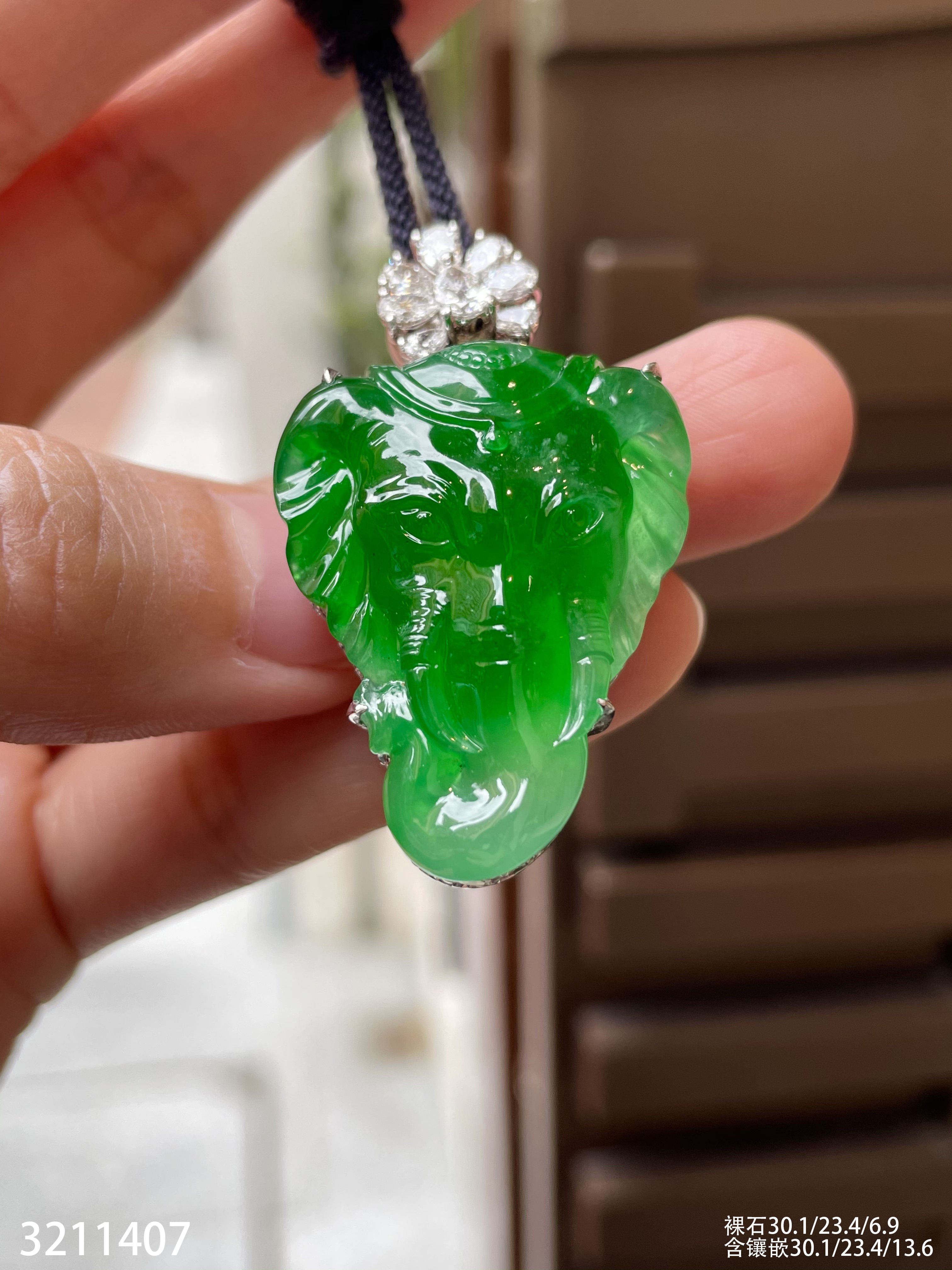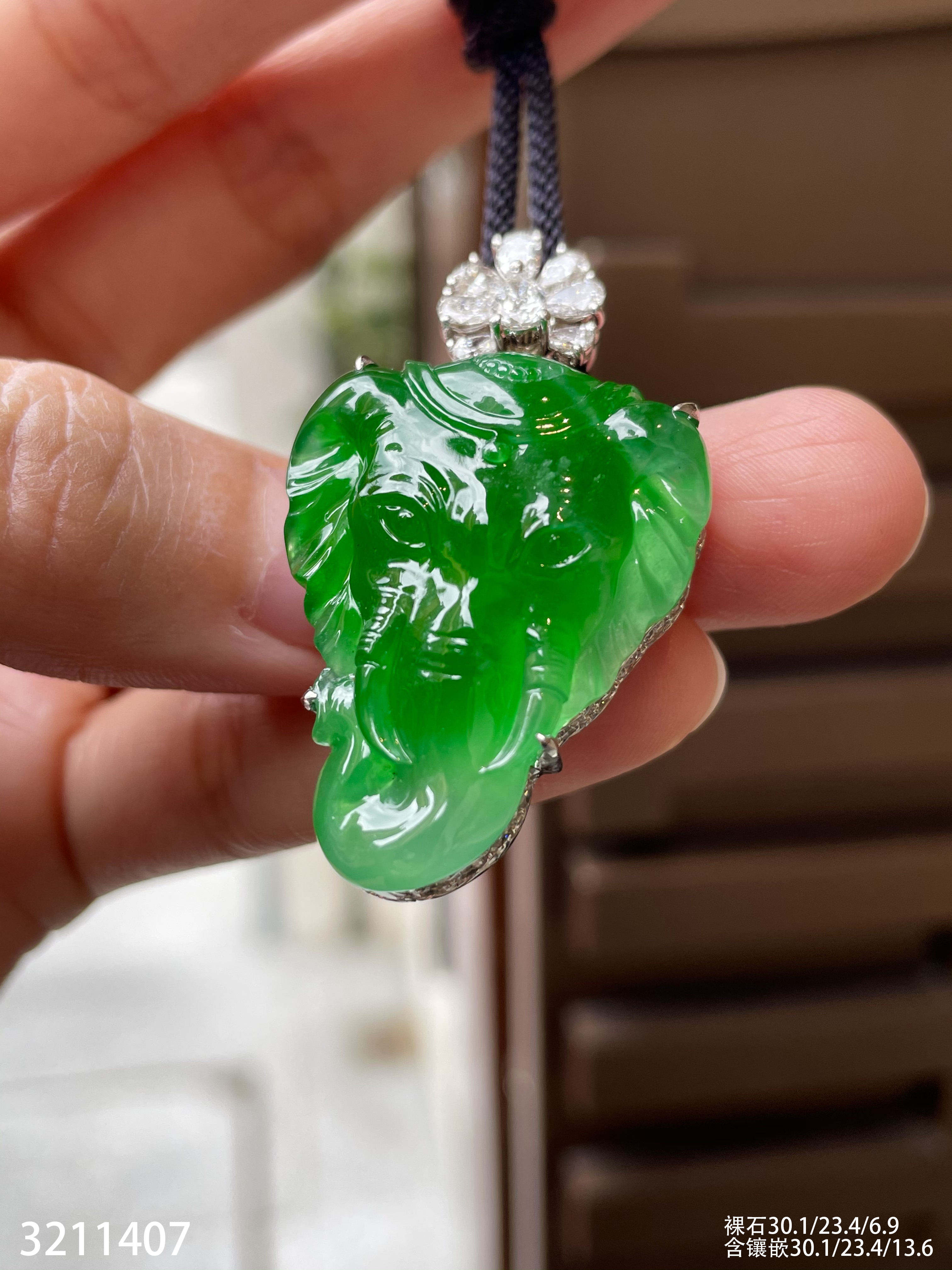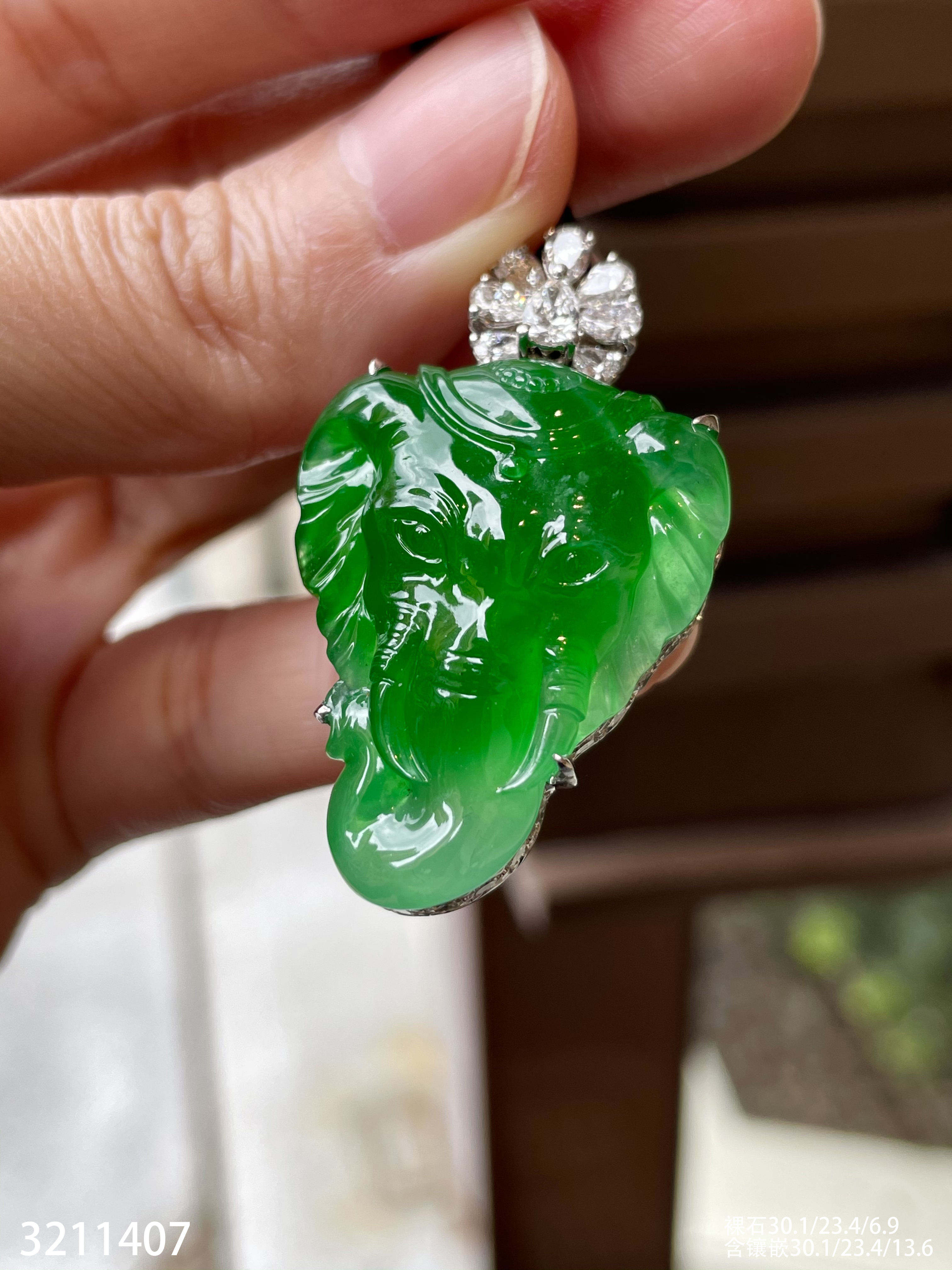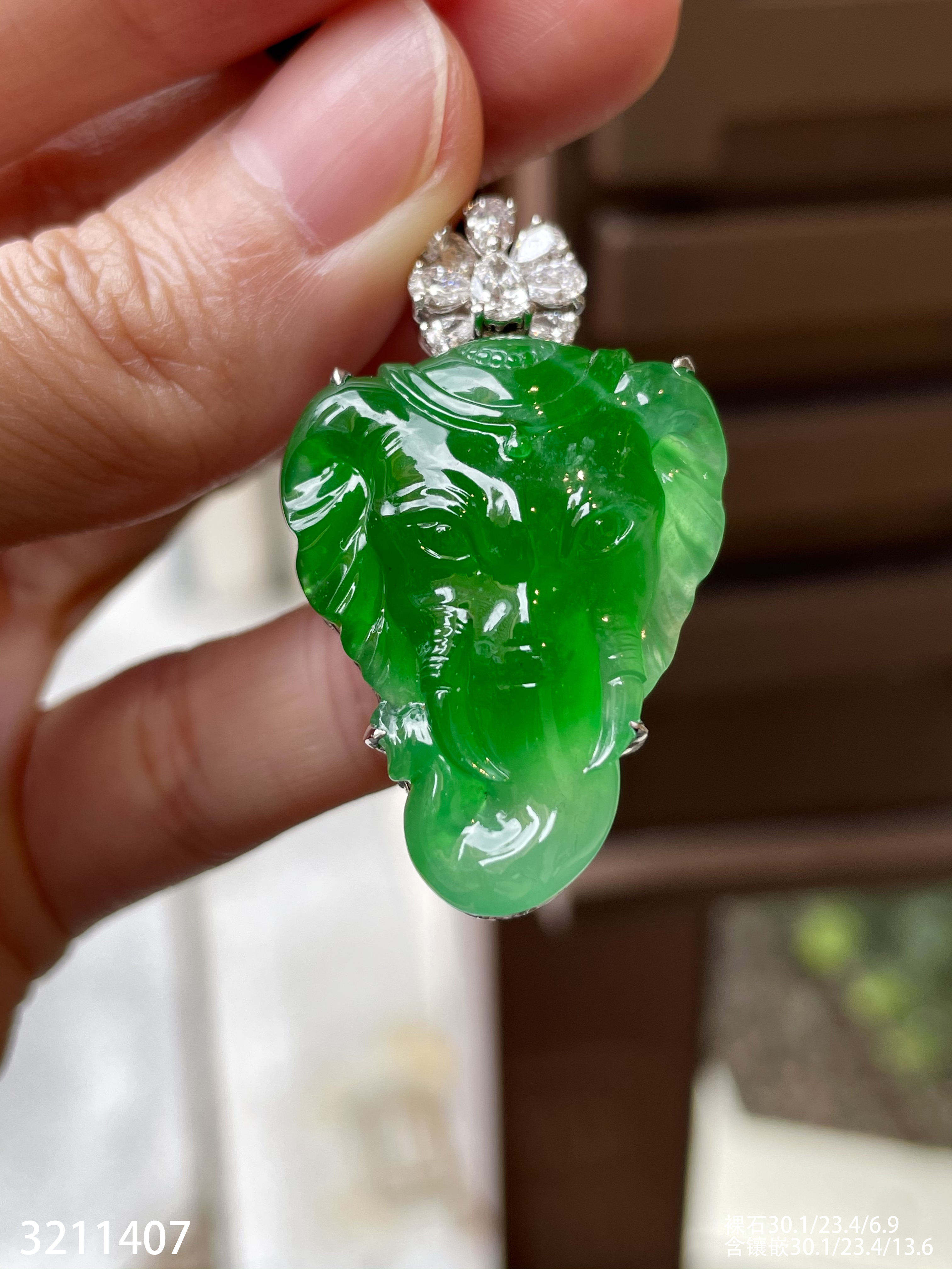 玻璃种艳绿大象吊坠【3211407】具体价格微信咨询