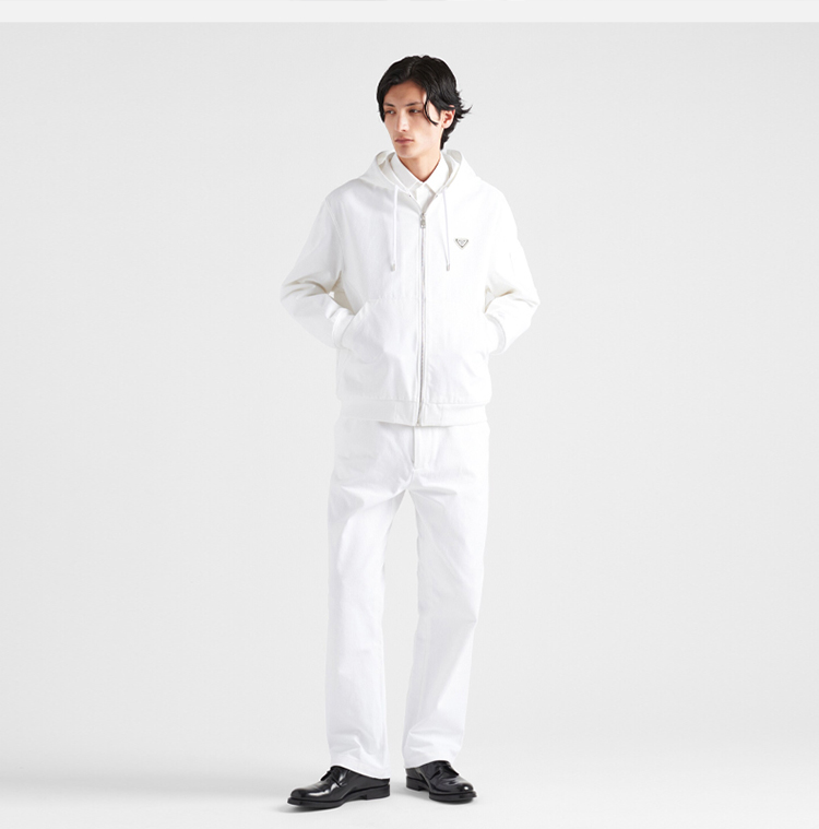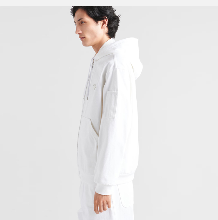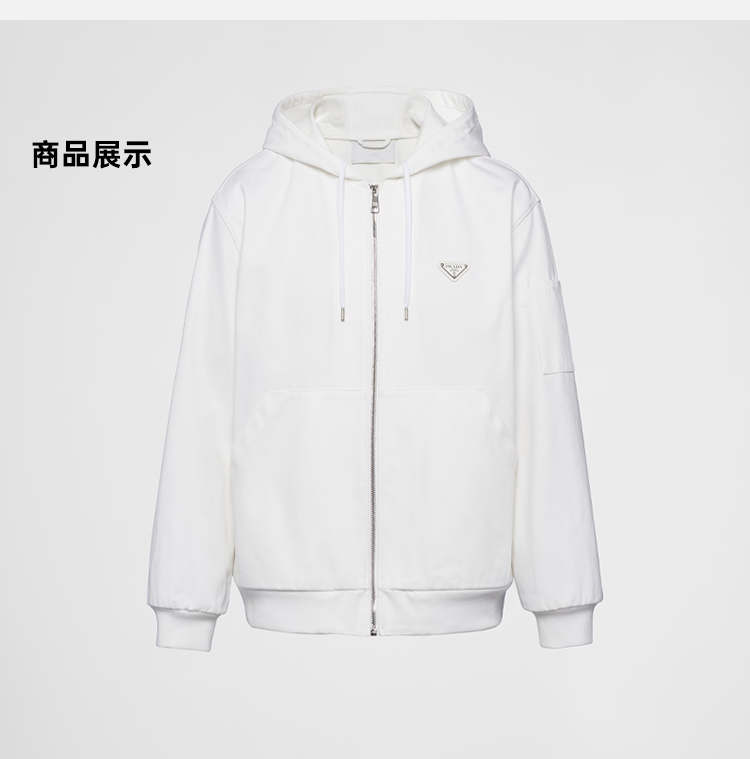PRADA 普拉达 男士 男士珐琅金属三角形徽标棉质连帽外套 白色 GEB259 1ZFB F01CD