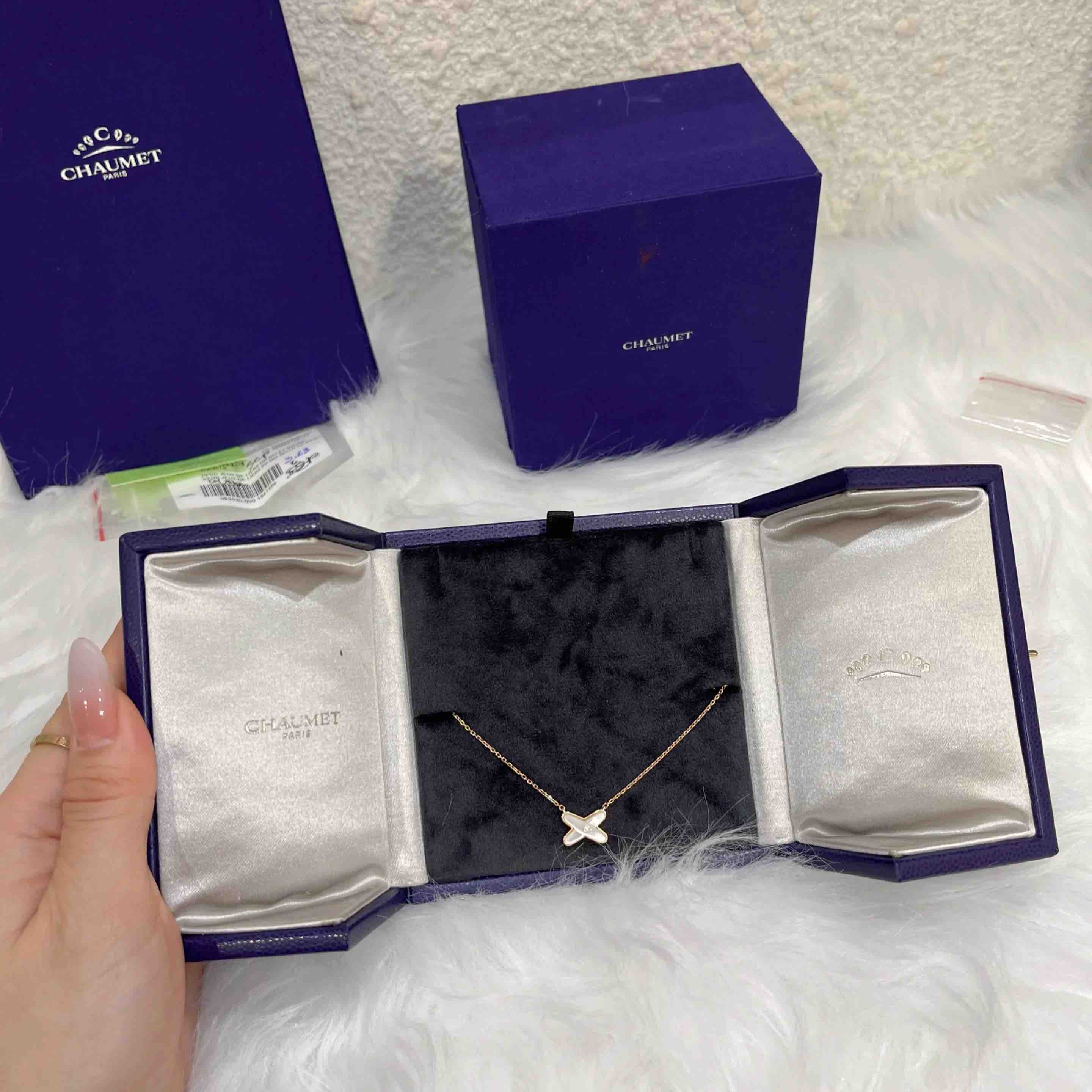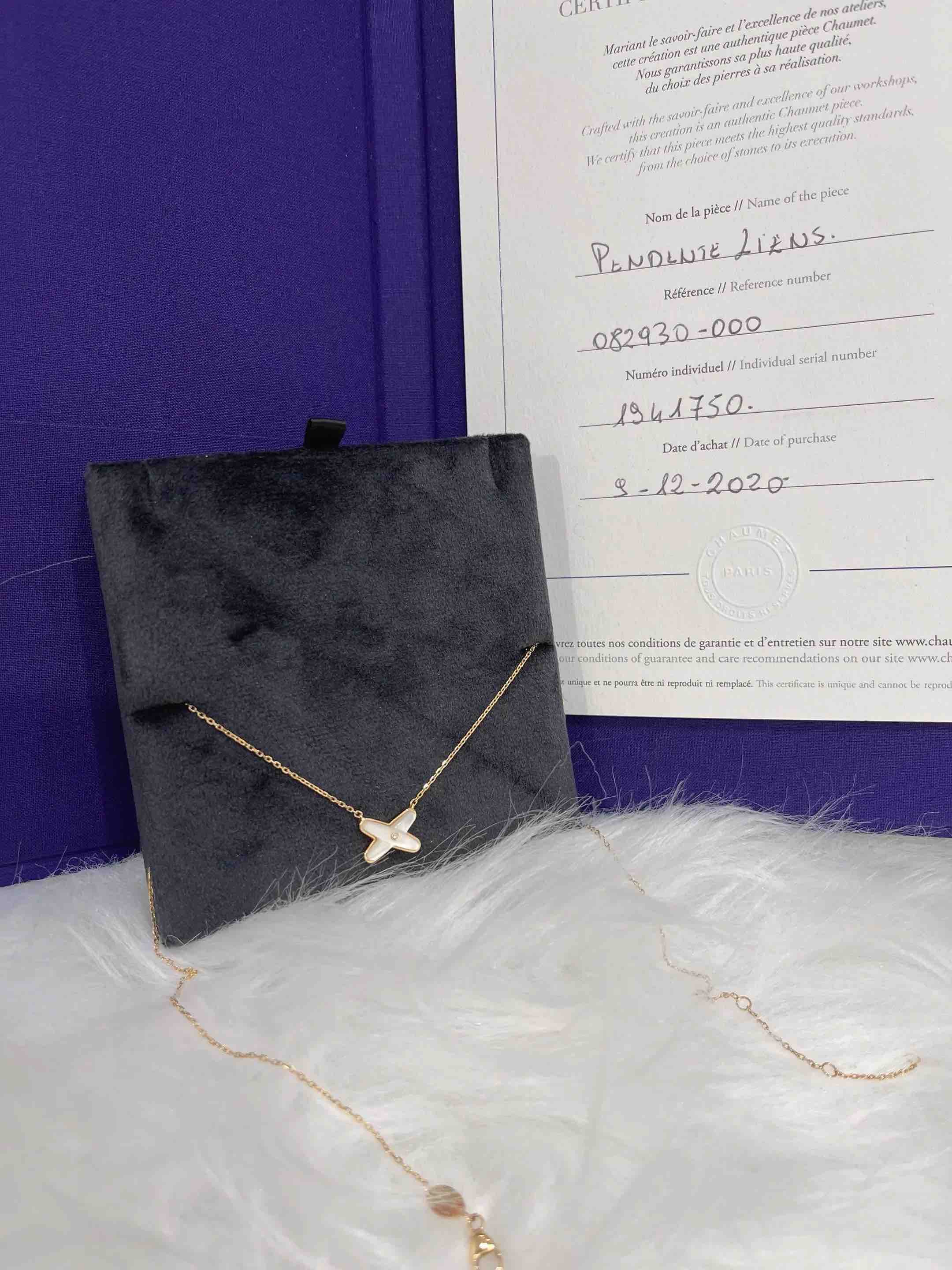【商品详情】正品二手 尚美 Liens 白贝母 钻石 18K 项链🥅97新 42cm 配件:保卡 内盒 外盒。情感纽带