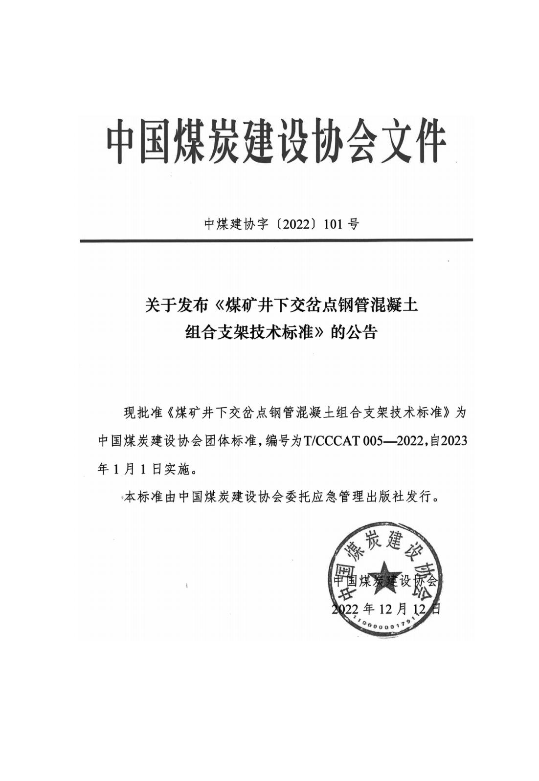 煤矿井下交岔点钢管混凝土组合支架技术标准