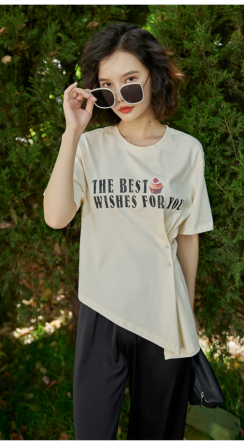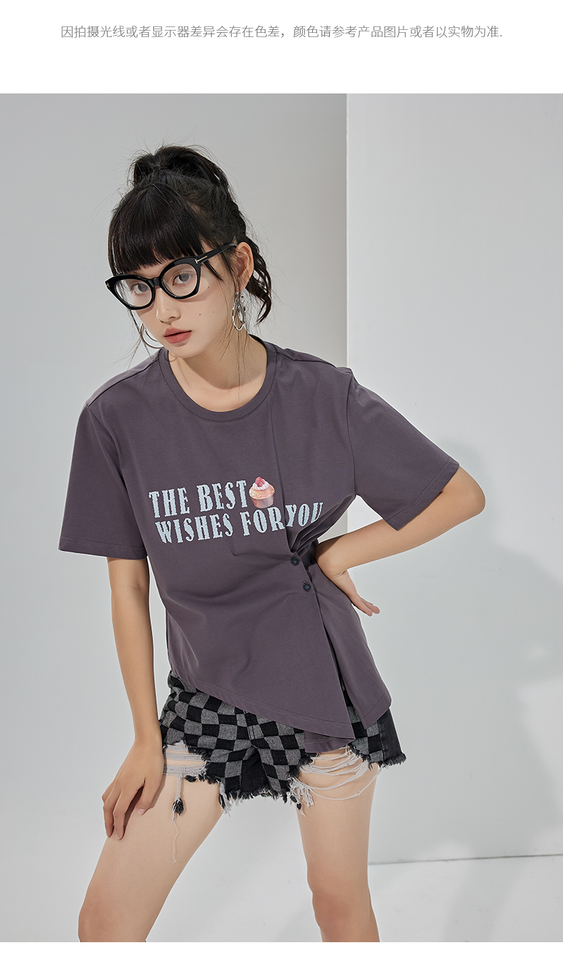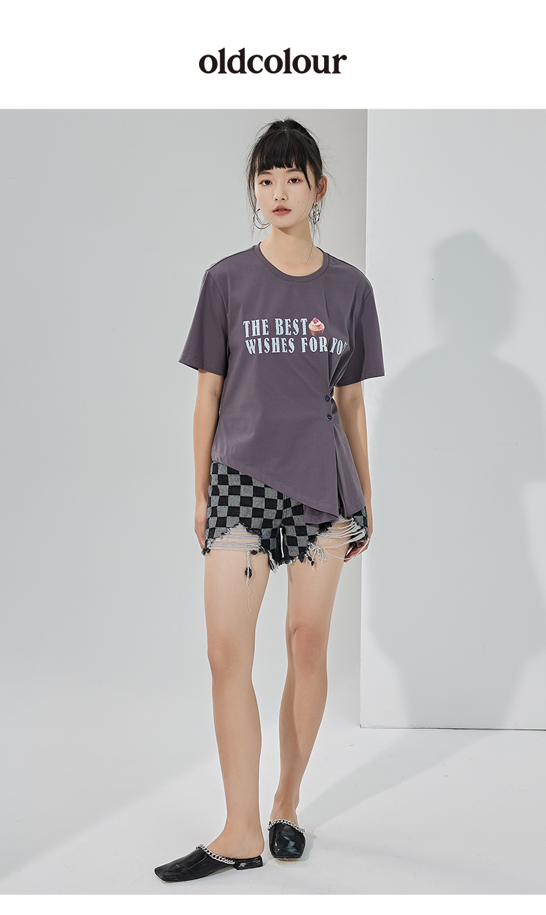 oldcolour2022夏季新品设计感短袖T恤女BO22021052B