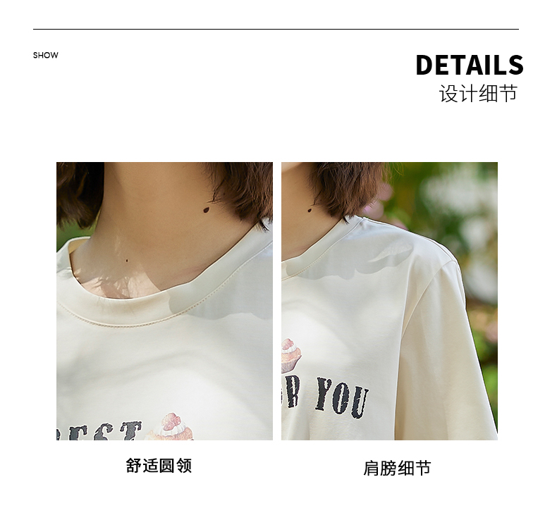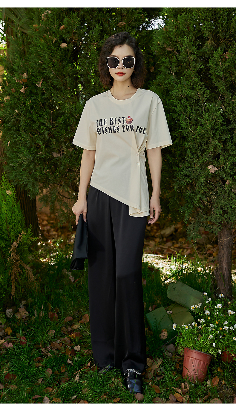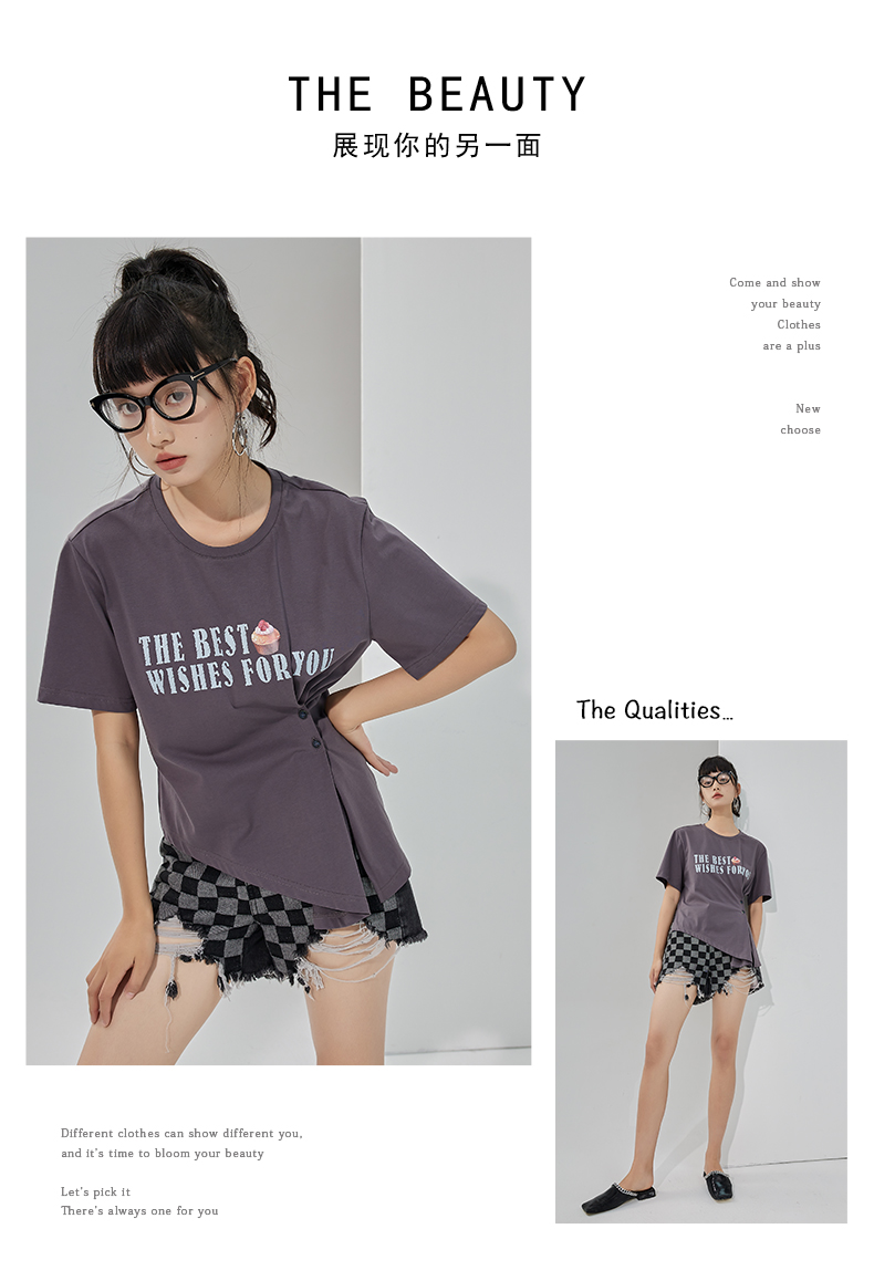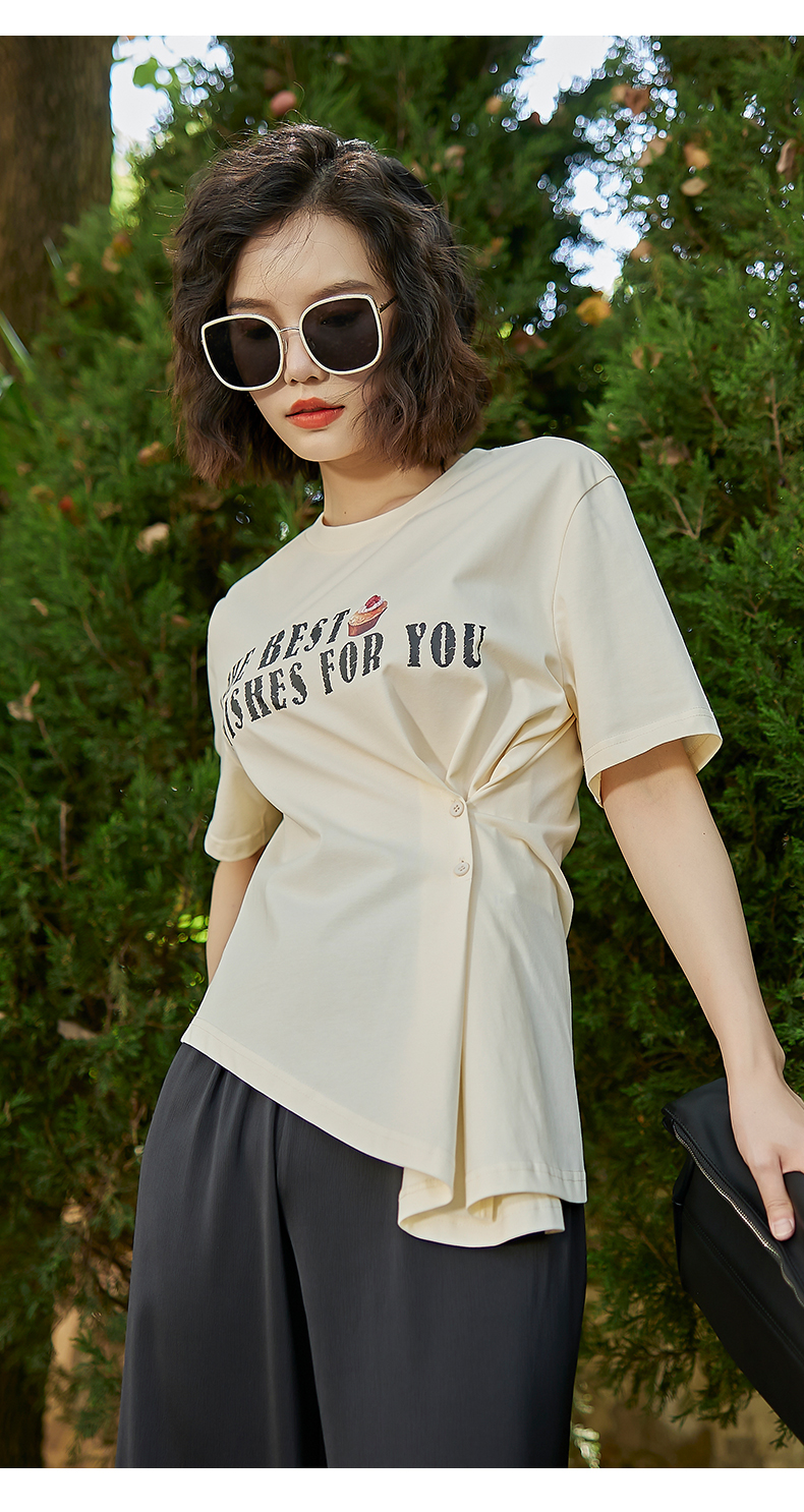 oldcolour2022夏季新品设计感短袖T恤女BO22021052B