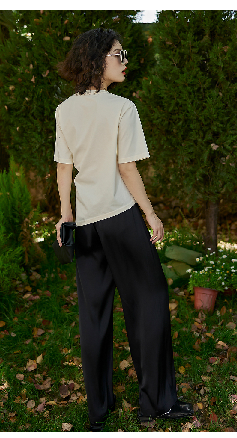 oldcolour欧珂夏季纯色抽绳弹力松紧腰休闲阔腿裤女P25073107