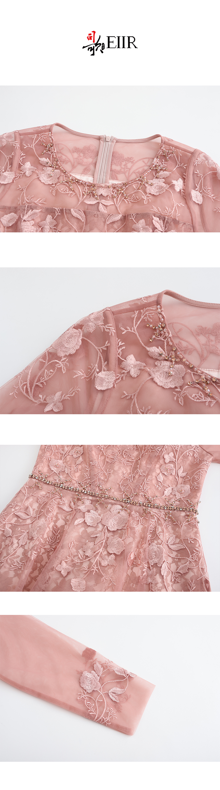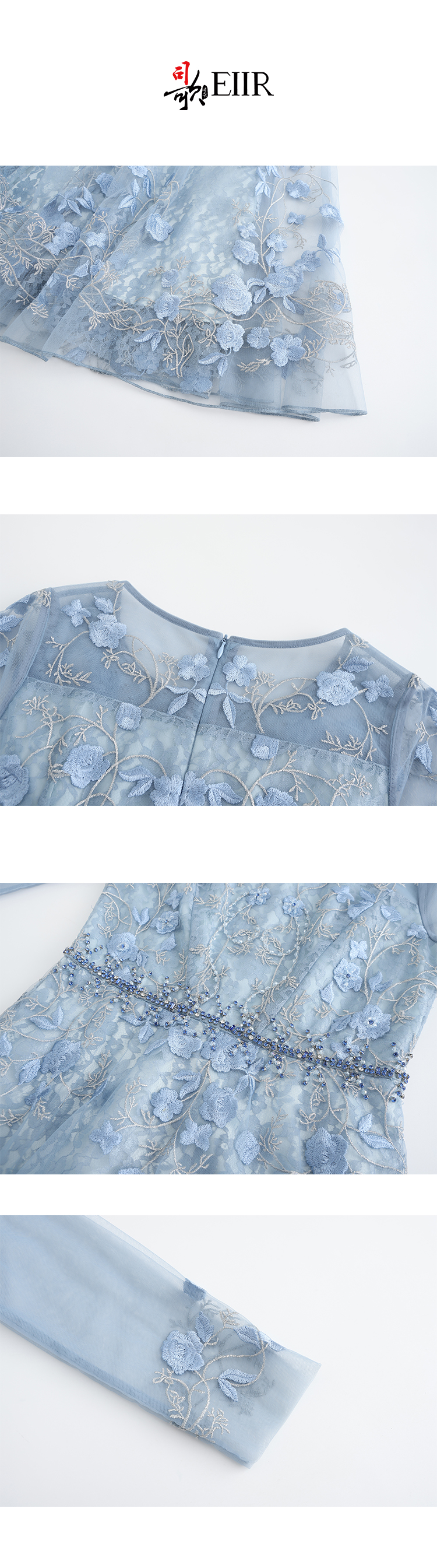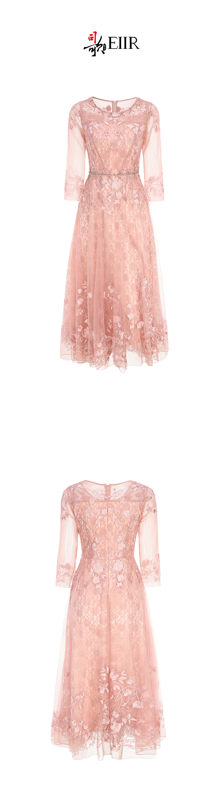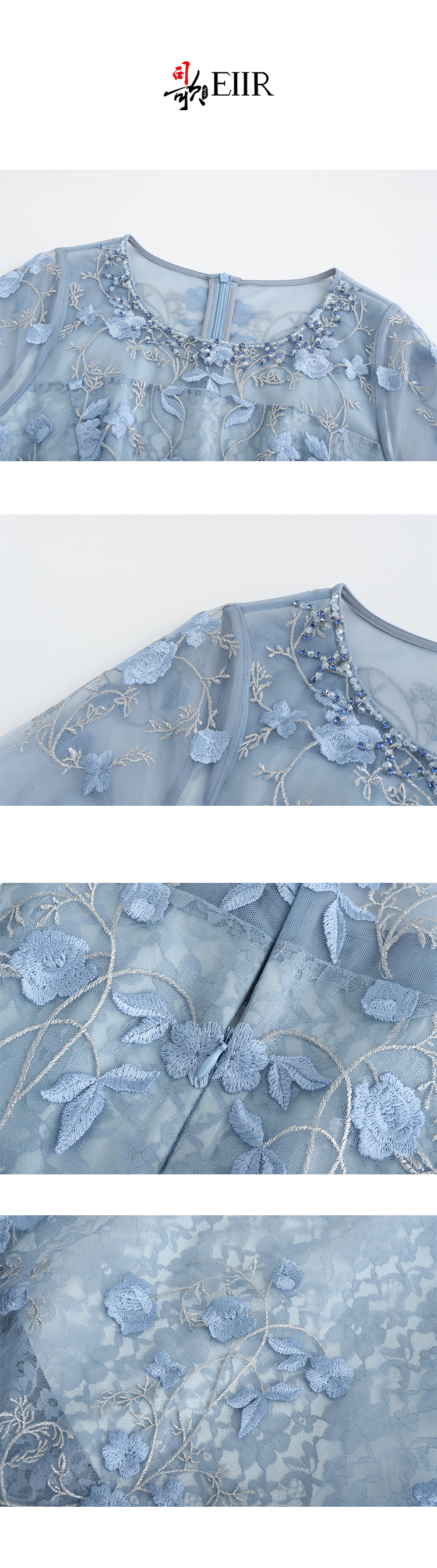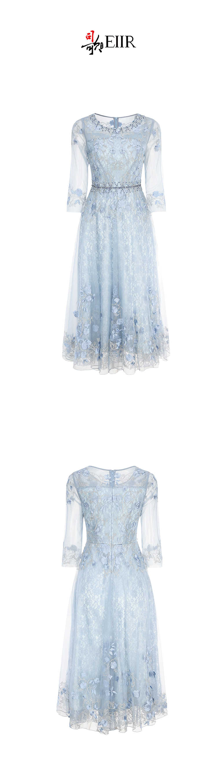 司歌刺绣礼服连衣裙圆领网纱显瘦长裙A88G1764