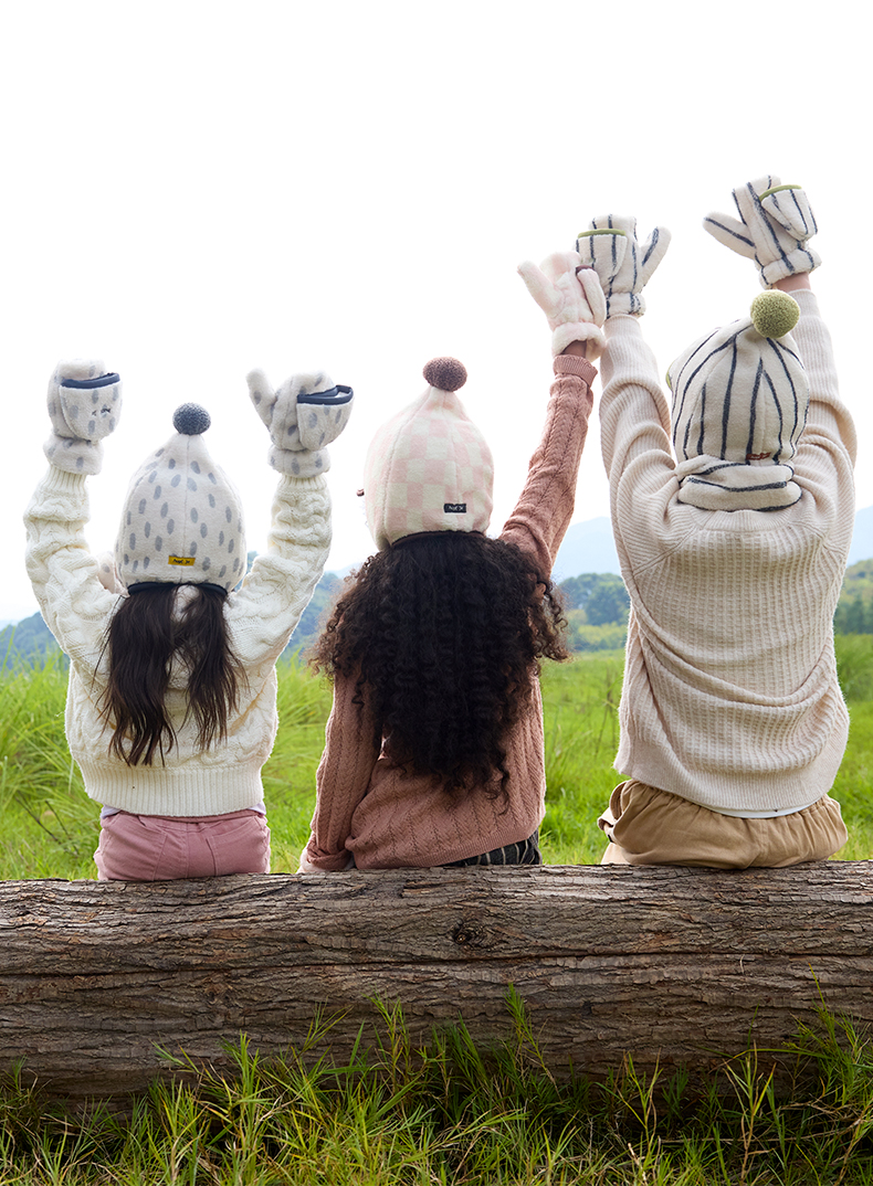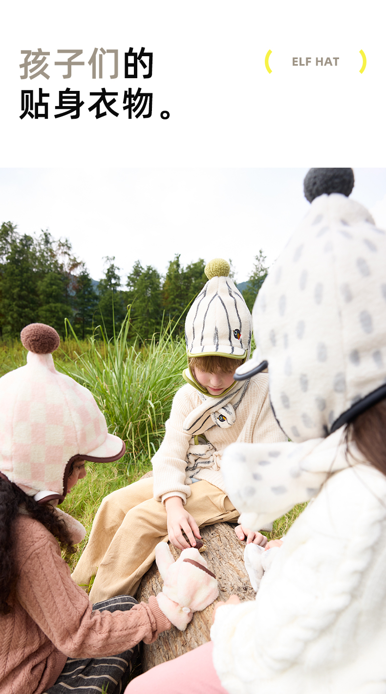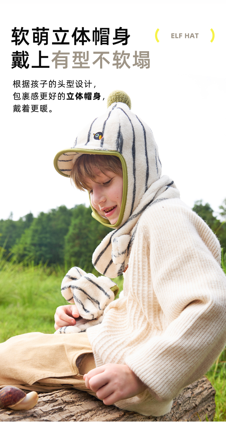 hugz儿童帽子围巾三件套秋冬季男童女孩防寒保暖防风帽儿童精灵帽