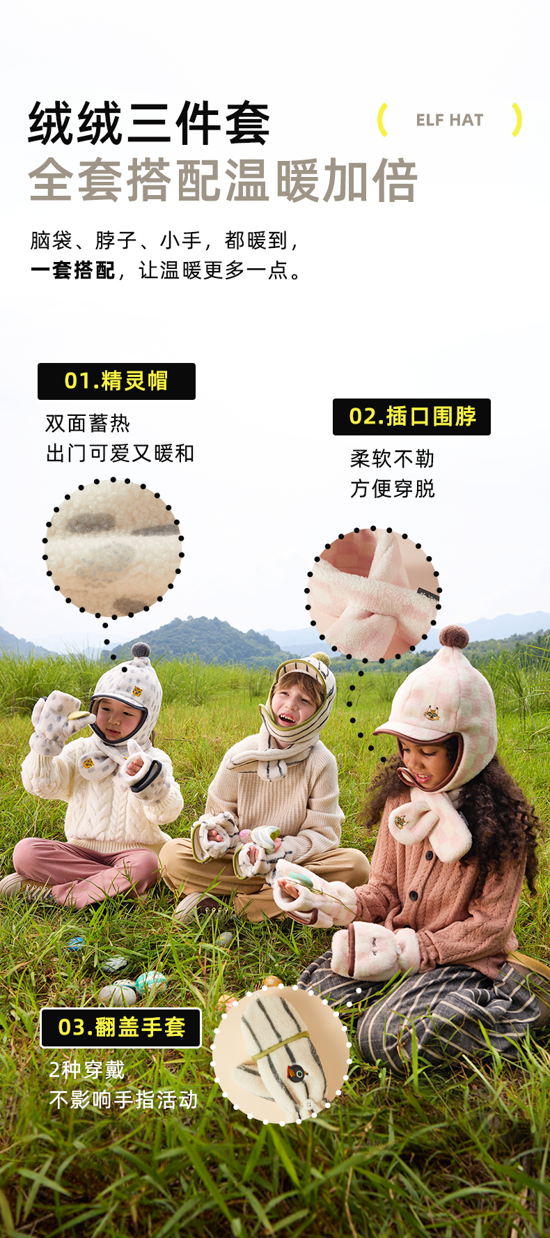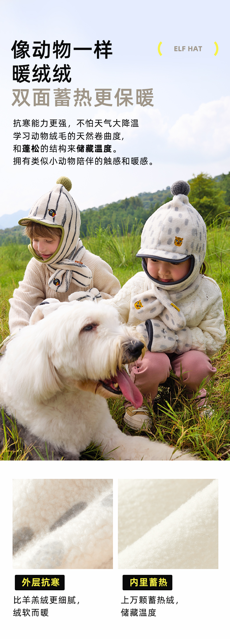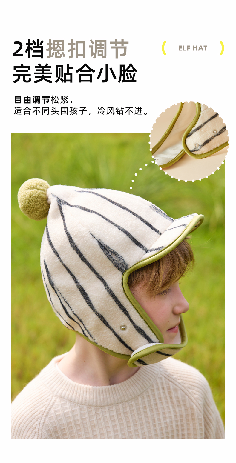 hugz儿童帽子围巾三件套秋冬季男童女孩防寒保暖防风帽儿童精灵帽